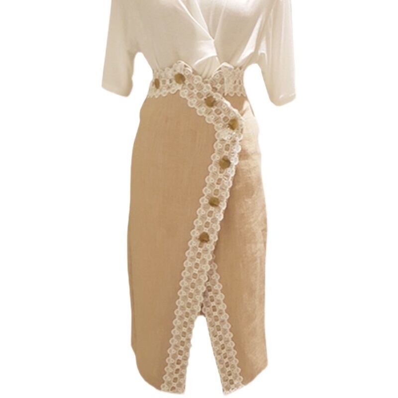 Aラインレーススカート スリット ハイウエスト スカート レディース 不規則スカート エレガント ミディ丈 a3887