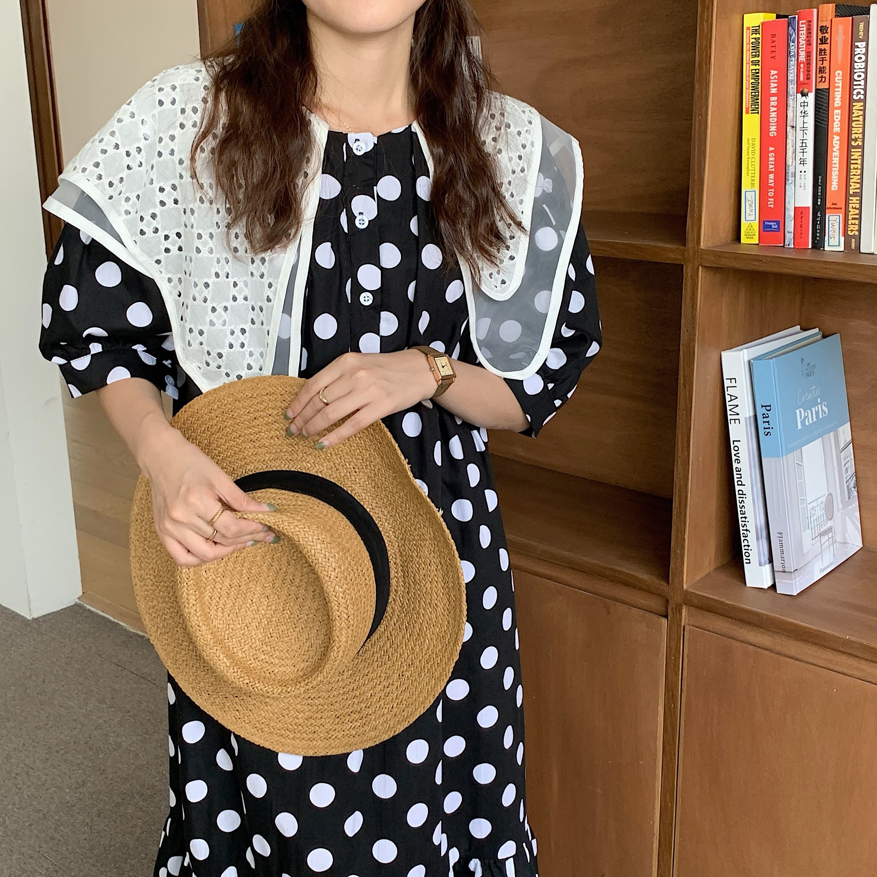 ドット柄 ビックレースカラーワンピース ドットワンピース 水玉 ワンピース ドレス レトロ. パフスリーブ フィッシュテールスカート マタニティウェア 2カラー a3862
