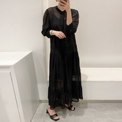 【インナー付き】ドット柄シースルーワンピース