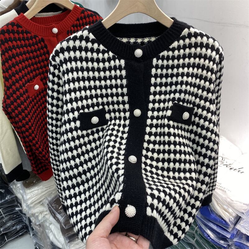 配色ニットカーディガン パールボタン ニットカーディガン カーディガン セーターコート セーターカーディガン レディース お仕事コーデ オフィス デート 4カラー a3899