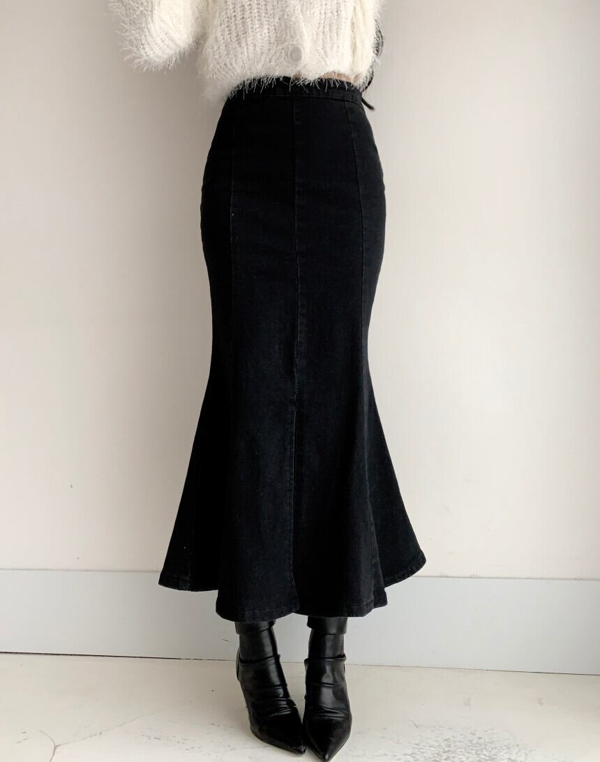 デニムマーメイドスカート ハイウエスト デニム マーメイド スカート フリル フレア ロング スリット 韓国 オルチャン ストリート ギャル 可愛い ジーンズ レディース 2カラー a3903
