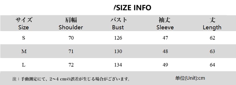 注:手動測定にて、2〜4 cmの誤差が生じる場合がございます。
