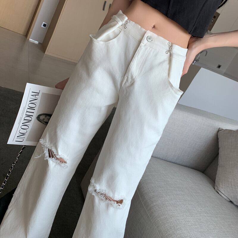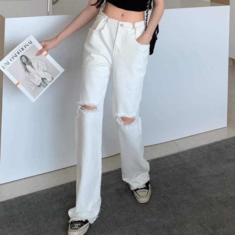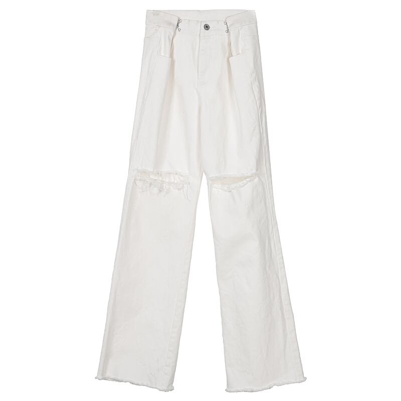 ダメージホワイトデニム ダメージデニム ホワイトデニム ダメージ デニム ジーンズ ストレートデニム ハイウエスト カジュアル ストリート アメカジ レディース ワイドデニム a3953