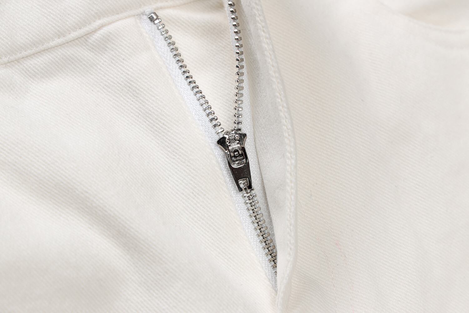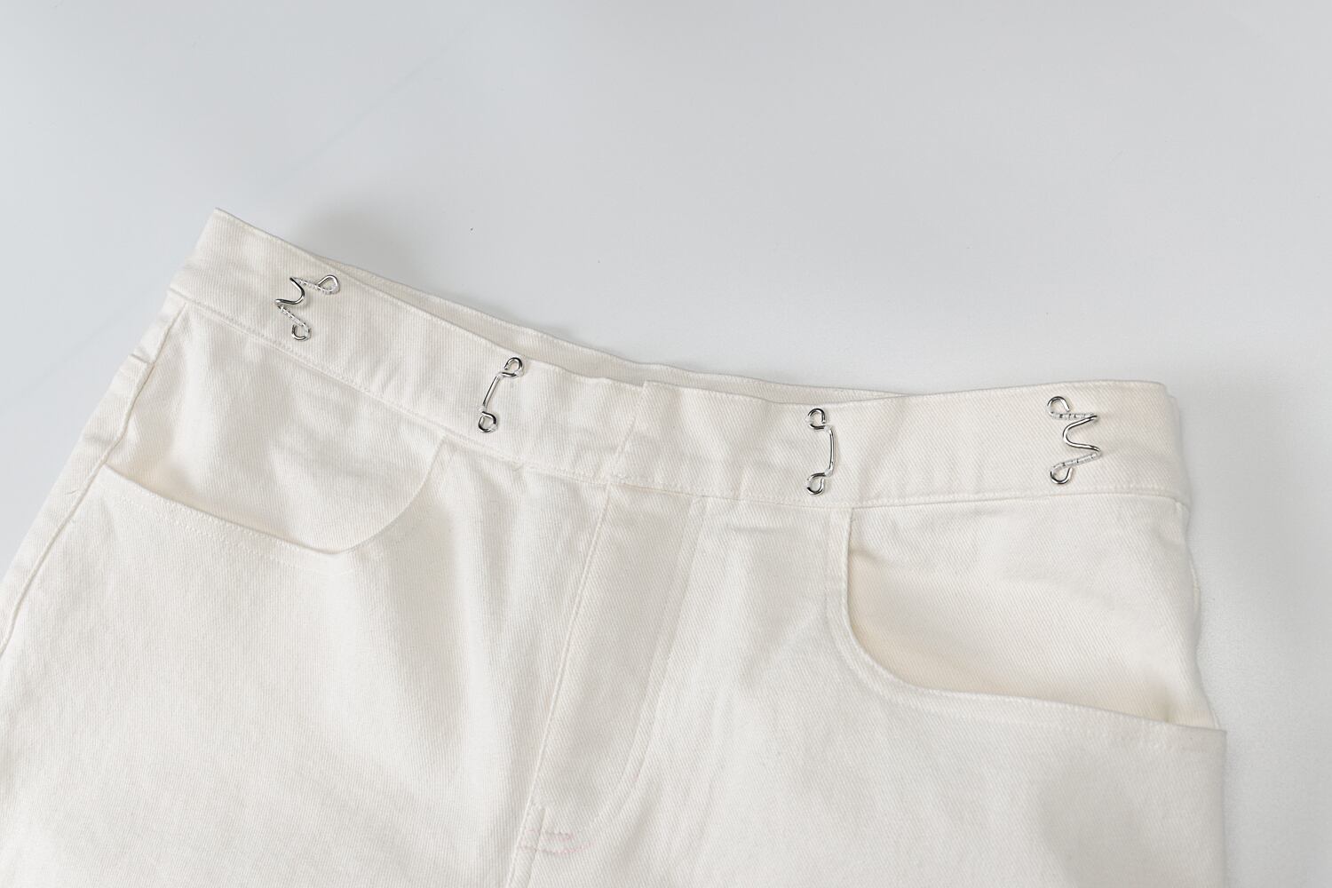 トレンドのウエスト調節金具月のダメージホワイトデニム