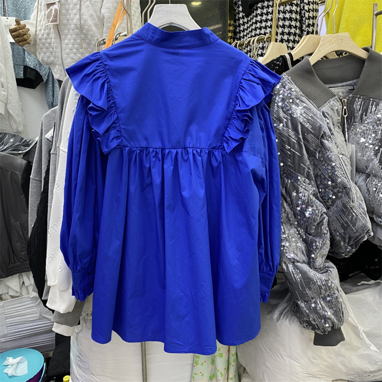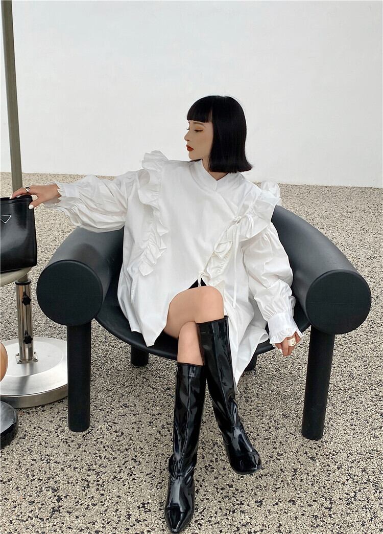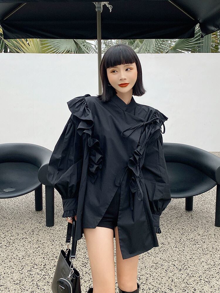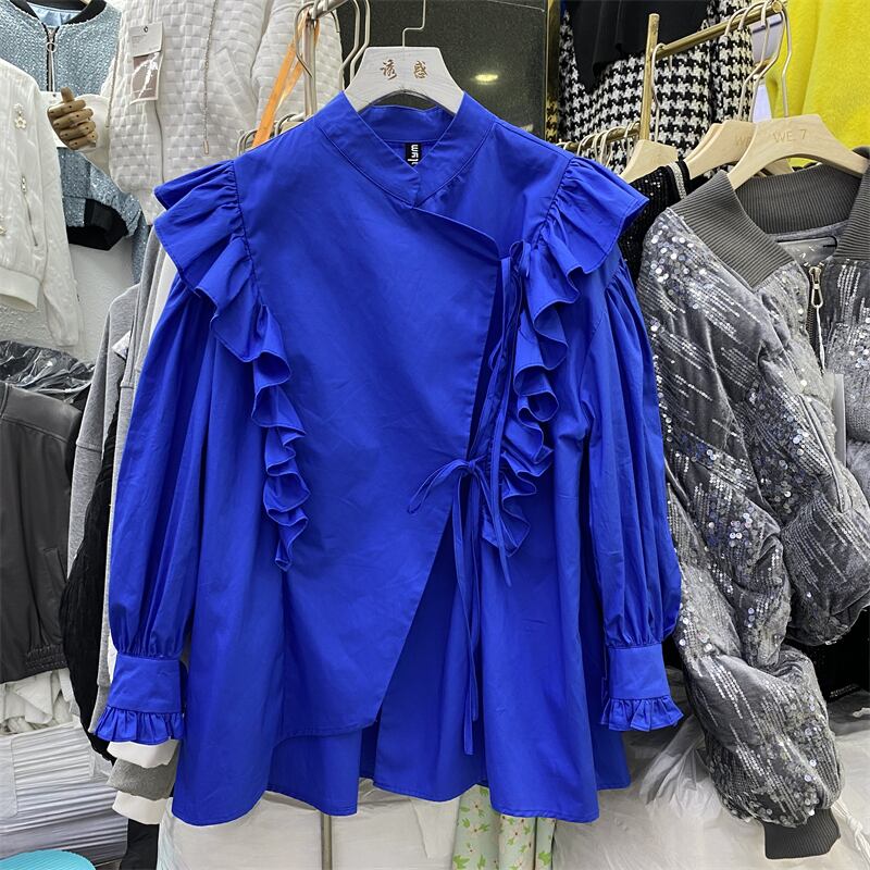 フリルレースアップブラウス フリルブラウス フレンチブラウス 長袖 ブラウス シャツ 蓮の葉レースアップシャツ ガーリー モード系 レディース オフィスコーデ 4カラー a3968