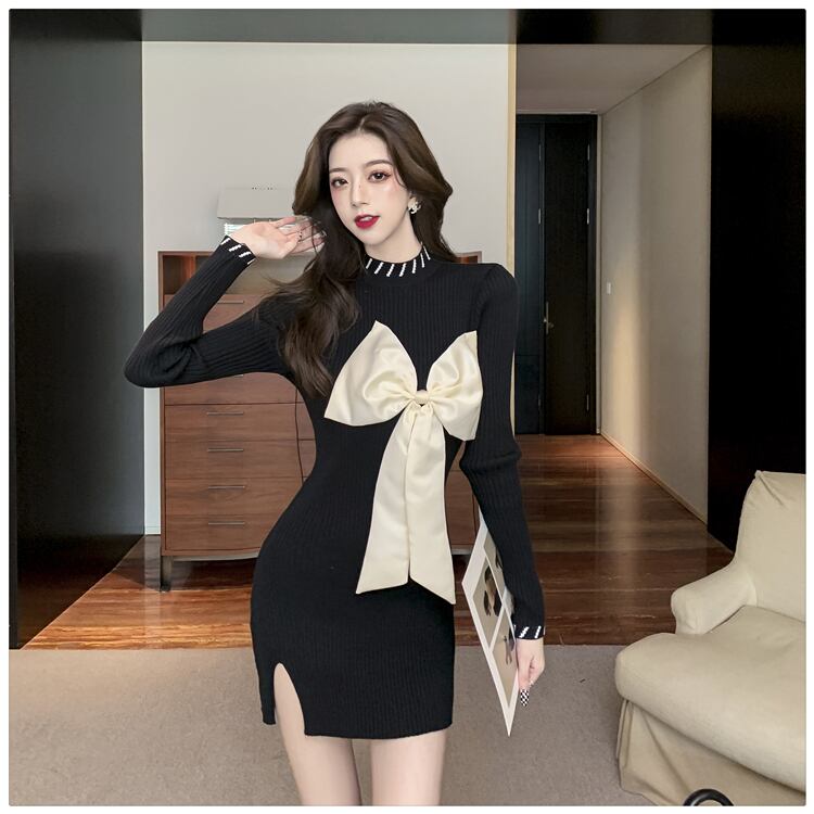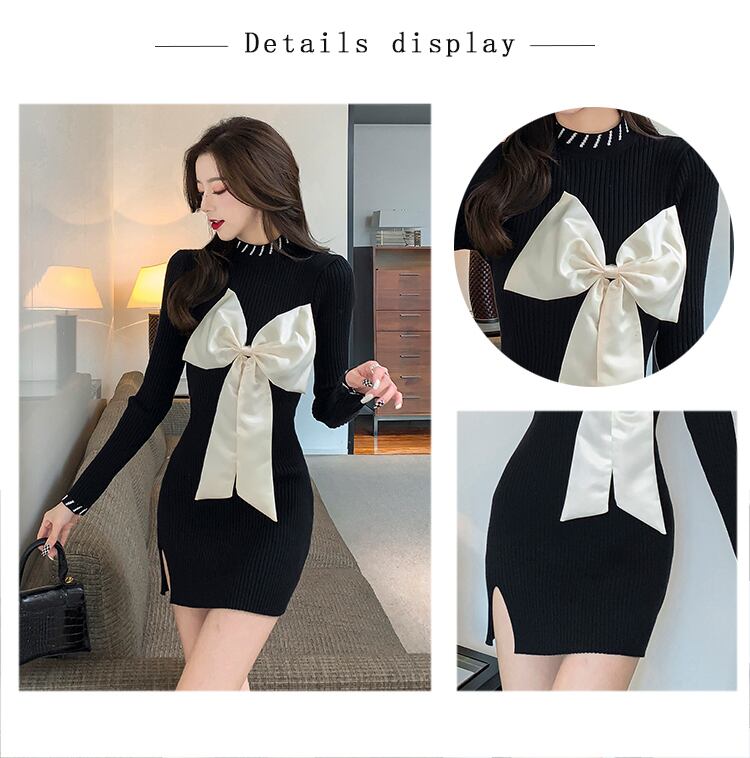 BIGリボン ニットワンピース ミニワンピ ニットドレス ボトミングスカート ミニ丈. ワンピース ドレス レディース かわいい デート ブラック a3923