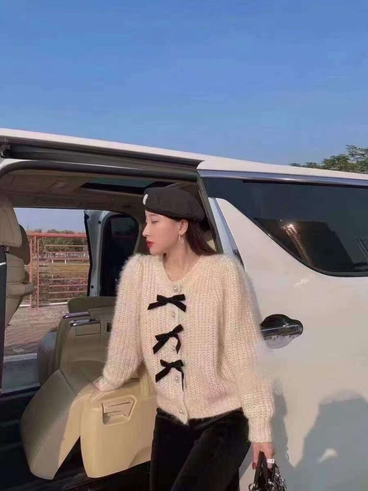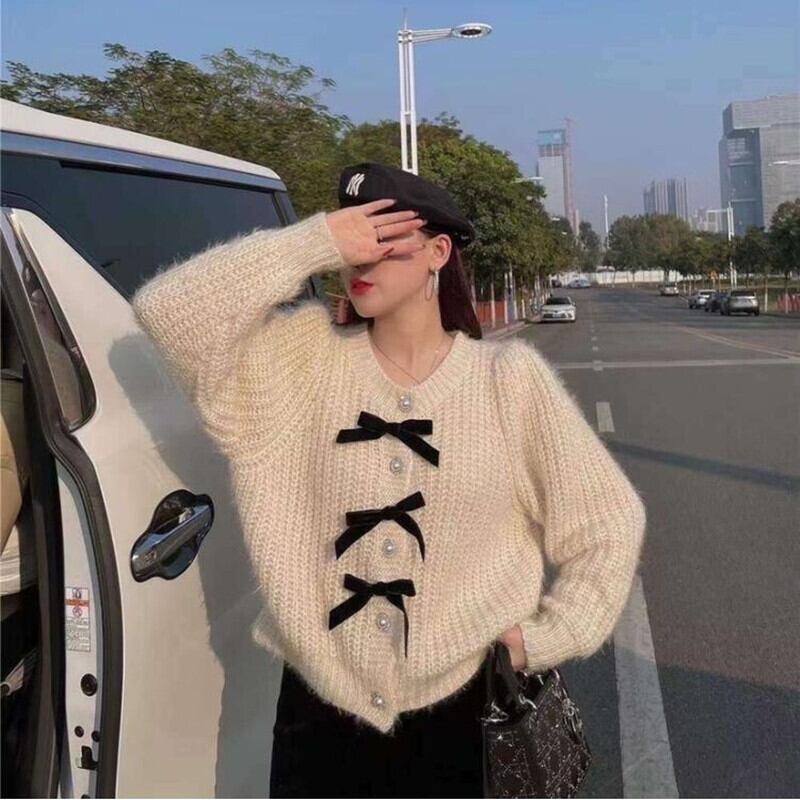 リボン付き ニットカーディガン カーディガン セーター レディース ルーズ アウターウェア 韓国. かわいい 2カラー a3944