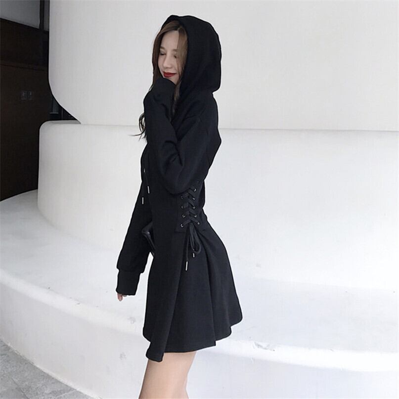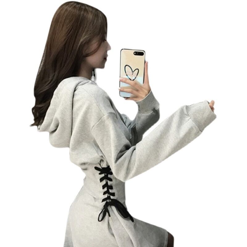 フード付き レースアップ セーターワンピース スウェットワンピース スリム パーカー ワンピース レディース サイド編み 春 秋 冬 黒 ミニ丈 長袖 通勤服 通学服 デート 女子会 ママ会 普段使い 10代 20代 30代 40代 50代 a3976