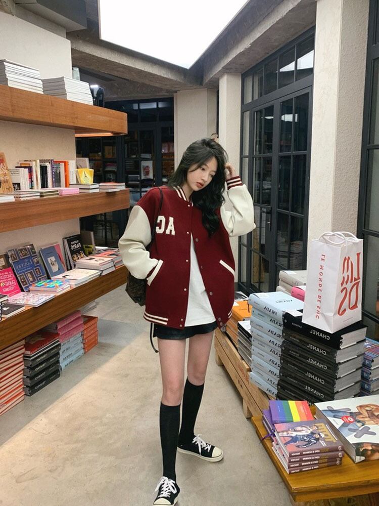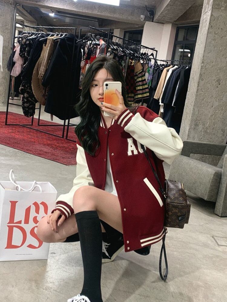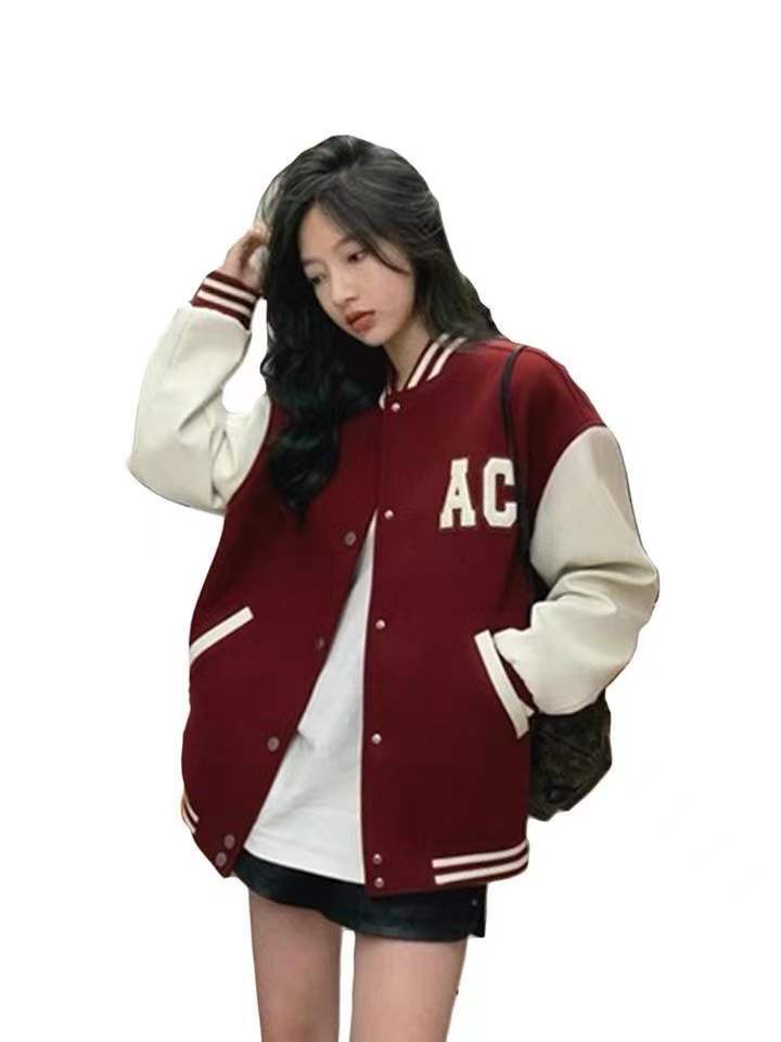 ロゴブルゾン アウター レディース カジュアル 春 スタジャン ベースボールジャケット オーバーサイズ ビッグシルエット ルーズ ラフ スポカジ スポーティー トレンド 韓国 ストリート レトロ 春服 春コーデ 春アウター お出かけ デート a4189