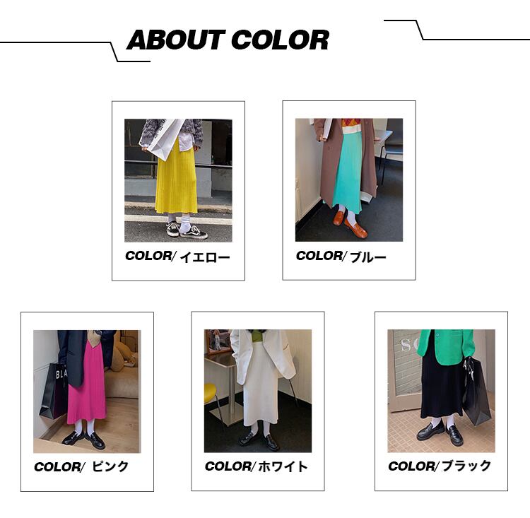 キャンディーカラーニットスカート リブニットスカート ニットスカート 薄手 ミドル丈 Aラインスカート スカート レディース かわいい おしゃれ a4190