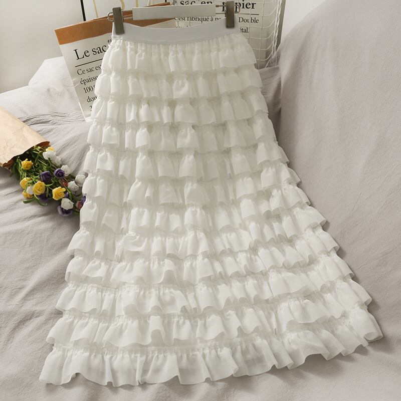 ティアードスカート フリルスカート ロングスカート マキシ ミモレ丈 レディース シフォン ハイウエスト Aライン フレアスカート ふんわり ボトムス 春夏秋 3カラー a4474