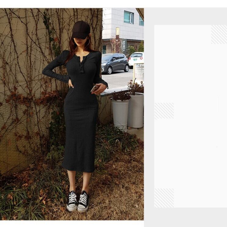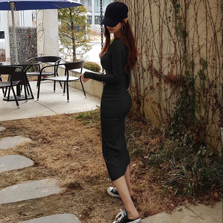 スウェットワンピース セーター. 長袖ワンピース スリム スリット ワンピース ドレス カジュアル ストリート アメカジ レディース プルオーバー ハイウエスト 韓国 2カラー a3995