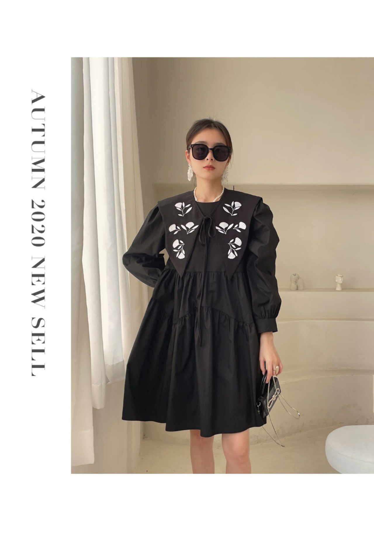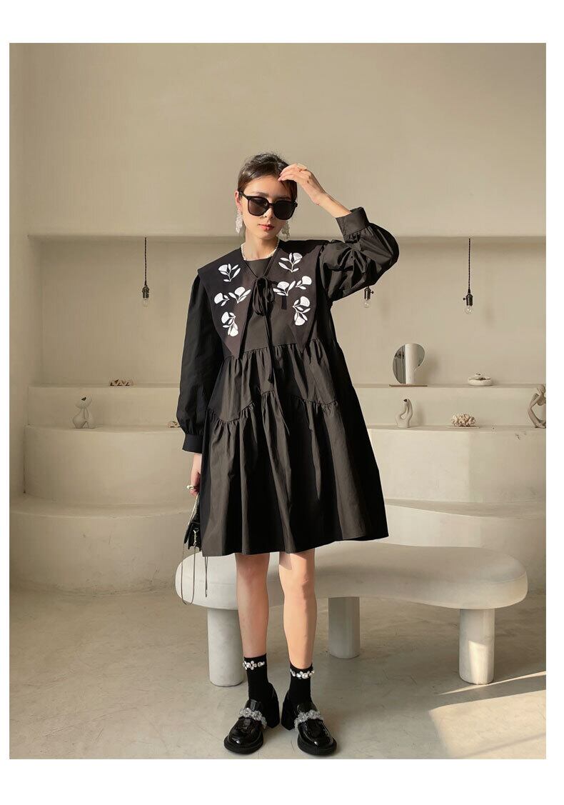 刺繍フラワーワンピース ショール付きワンピース フェイクカラー ワンピース ドレス シャツワンピース チュチュスカート レディース デート かわいい オシャレ モード系 2カラー a4004