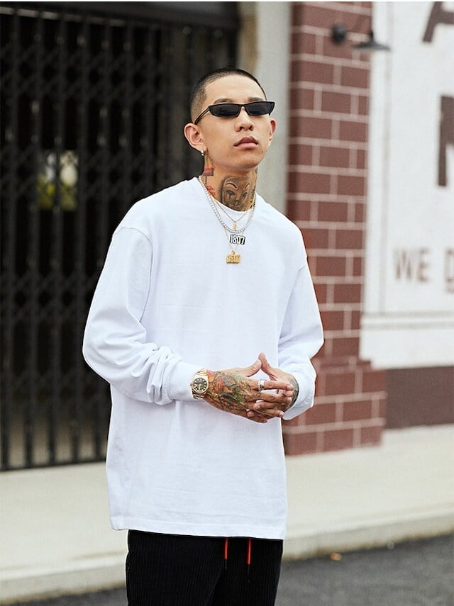 【1807】長袖Tシャツ ボトミングシャツ ルーズ カジュアル ヒップホップ. ストリート. ドロップスリーブ メンズ レディース ユニセックス m3