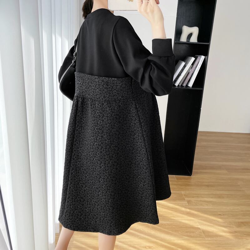 レイヤードワンピース ドッキングワンピース フェイクツーピース ワンピース 長袖 大きいサイズ レディース マタニティー オフィスコーデ Aライン長袖ワンピース a4027