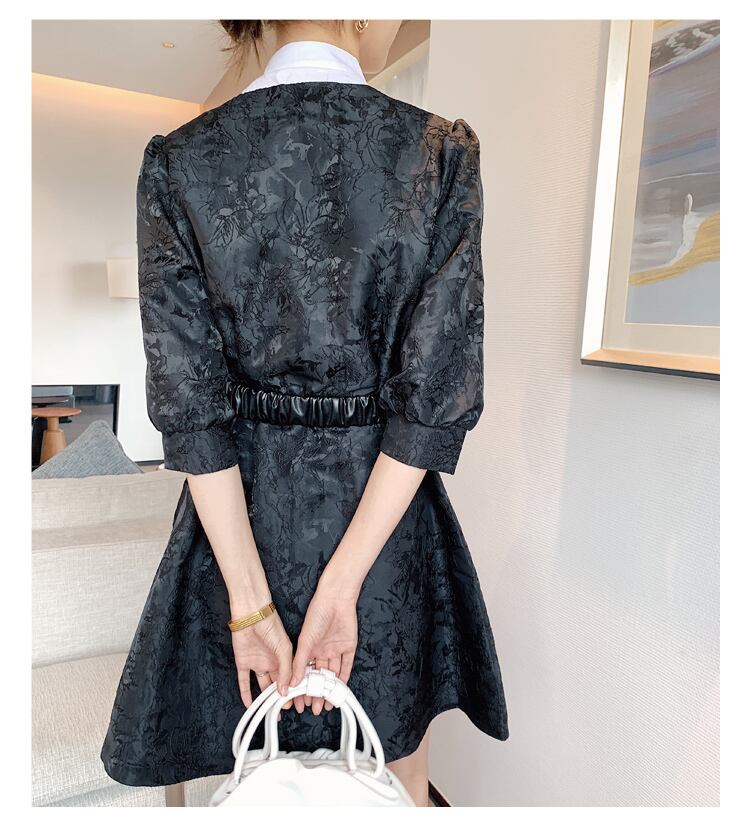 ジャカード柄のジャケットとノースリーブシャツワンピの綺麗めSET