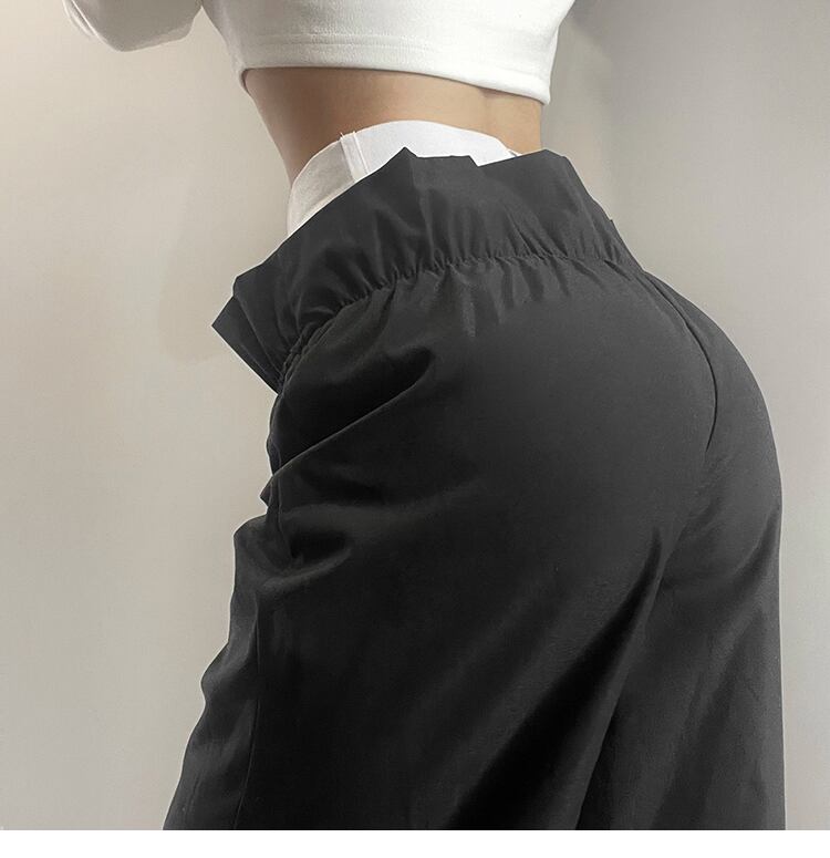 ダブルウエストカジュアルパンツ レディース ルーズ ストレートパンツ カジュアル パンツ ストリート オルチャン 韓国 a4038