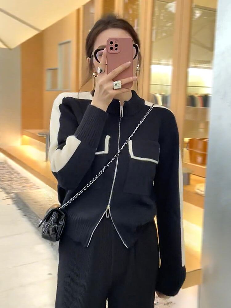 ダブルジップカーディガンジャケット ニットカーディガン カーディガン ジャケット アウター レディース ショート丈. 韓国 オルチャン 4カラー a4047