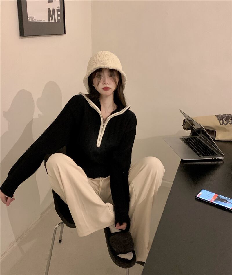 バイカラージップニット ボトミングシャツ セーター ニット レディース カジュアル. 長袖 韓国 オルチャン 2カラー. a4051