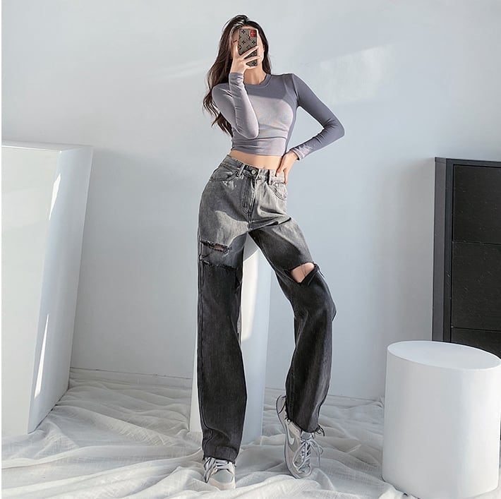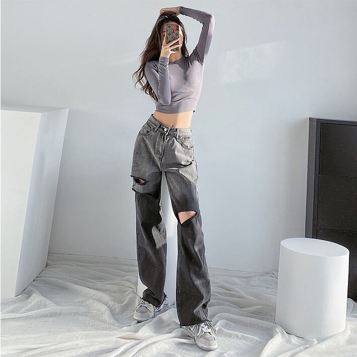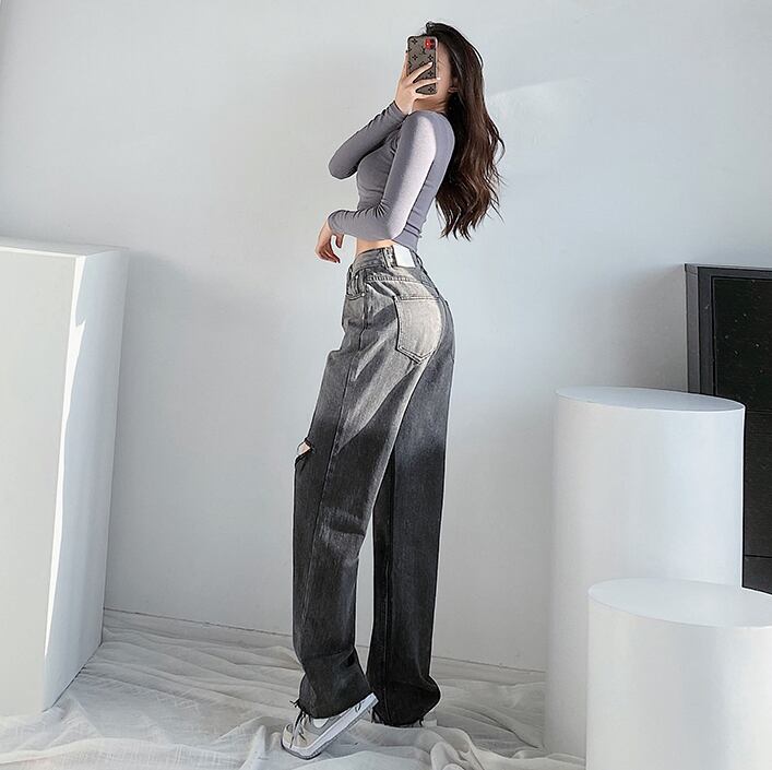 グラデーションストレートジーンズ ダメージジーンズ デニム ジーンズ ダメージデニム レディース ハイウエスト ルーズ. アメカジ カジュアル ストリート a4074