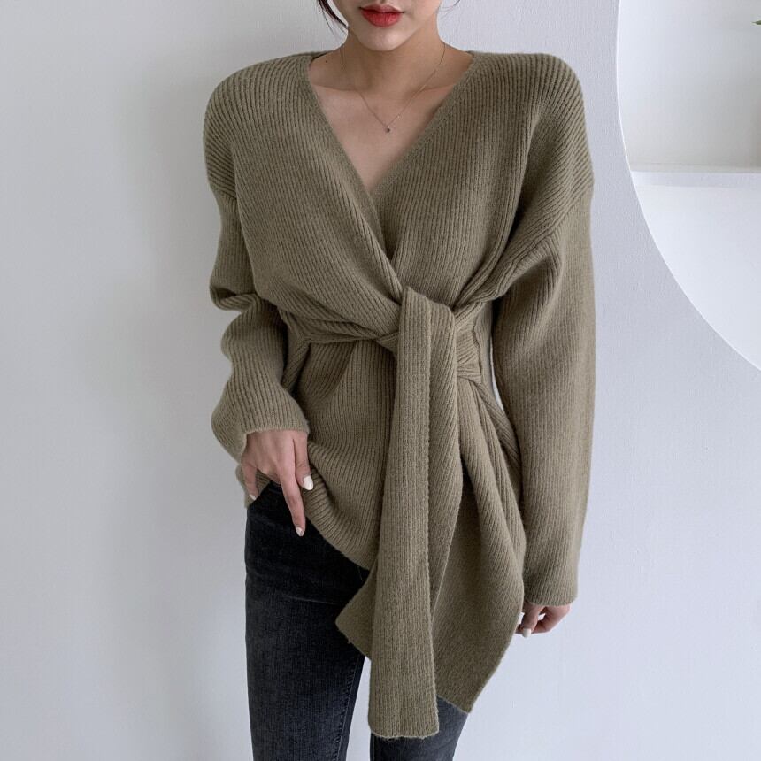 Vネッククロスニットセーター フロントクロス Vネックニット ニット セーター トップス レディース オフィスコーデ 3カラー. a4076