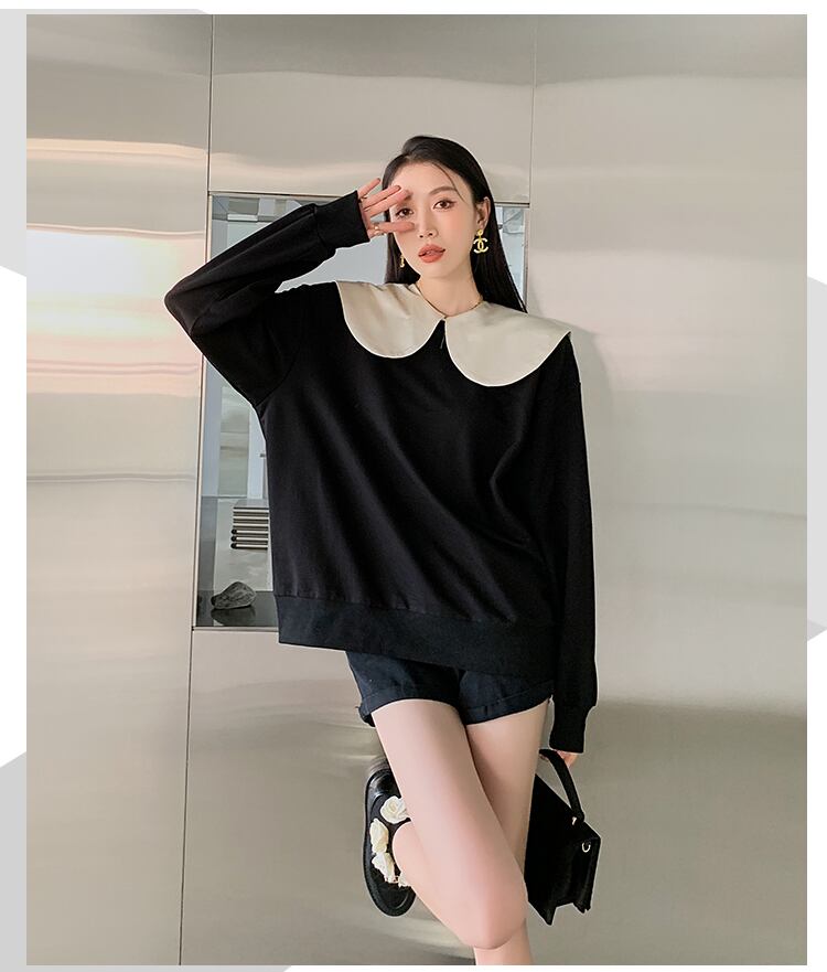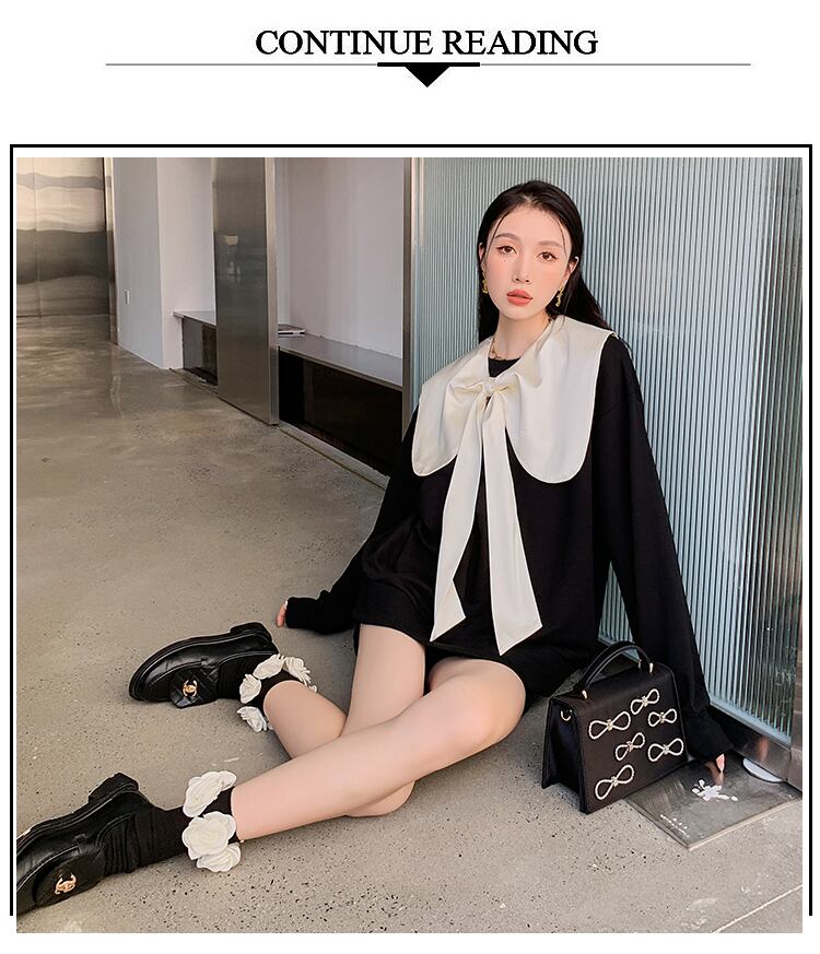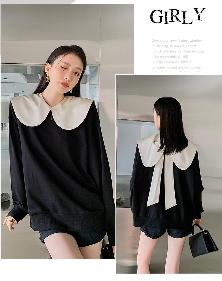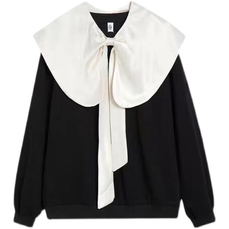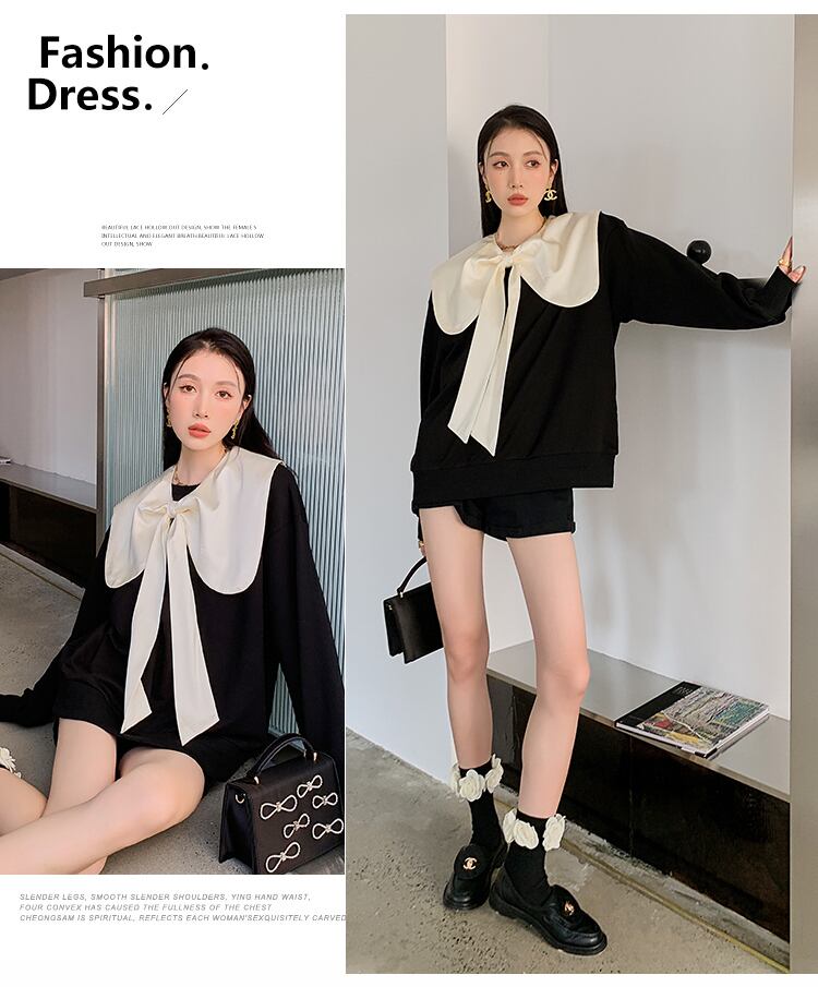 ビッグカラー リボントップス 長袖 トップス プルオーバー トレーナー モノトーン バイカラー ガーリー ラブリー オフィス お仕事コーデ a4088