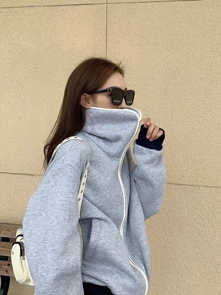 セータージャケット スウェット ブルゾン ジャケット 春服 レディース ジップアップ 韓国 ファッション 春 2カラー a4089
