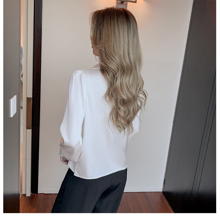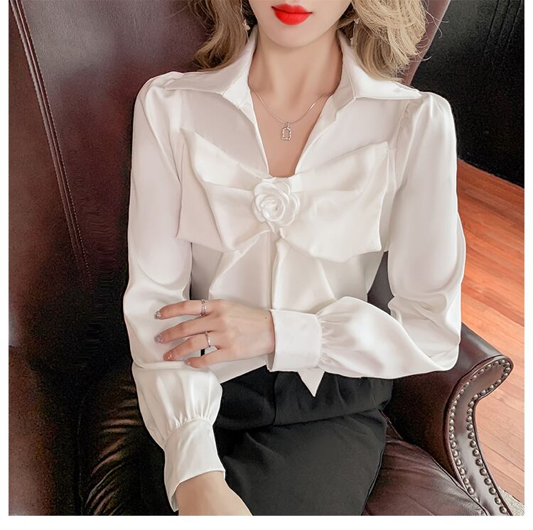 BIGリボンブラウス 長袖 シャツ ブラウス ホワイト ガーリー お仕事コーデ レディース オフィスコーデ a4090