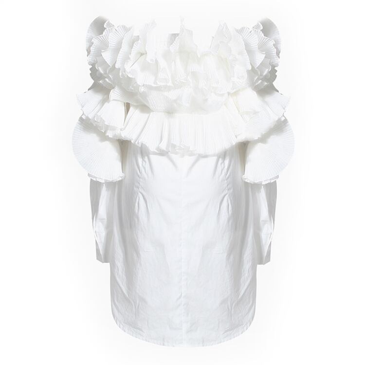 フリルスリーブブラウス. オフショルダー 長袖シャツ ブラウス シャツ モード系 オシャレ レディース フリルラペル a4101