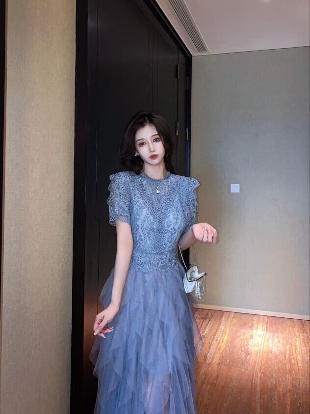 レースフェアリードレス レースワンピース ドレス ワンピース 半袖 レース ヘップバーン フレンチ. エレガント パーティー お呼ばれ 結婚式 二次会 綺麗め レディース 2カラー a4117