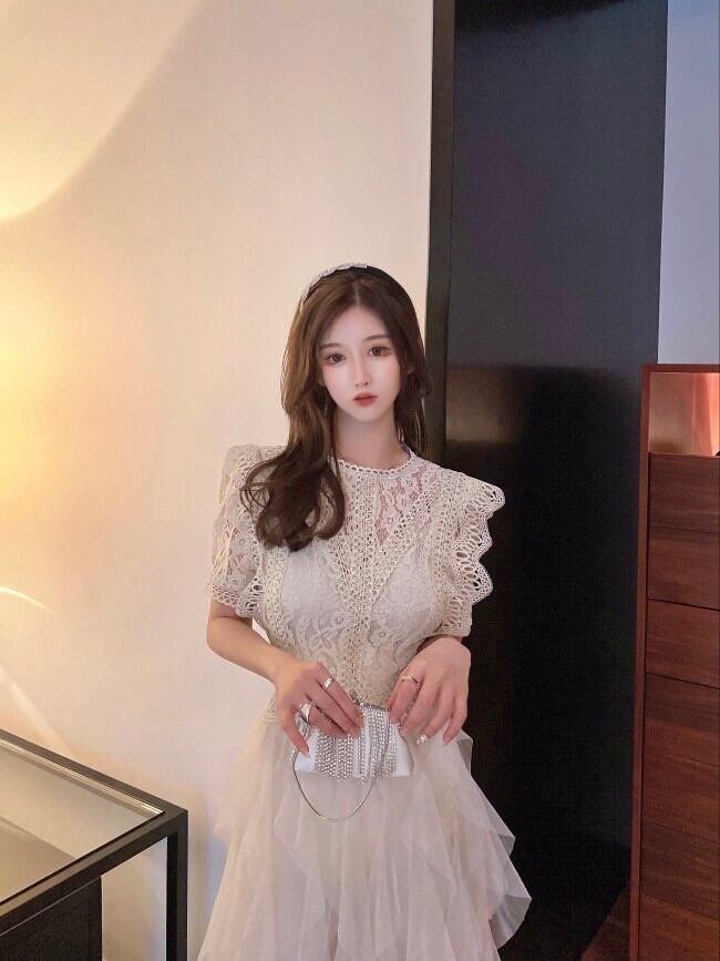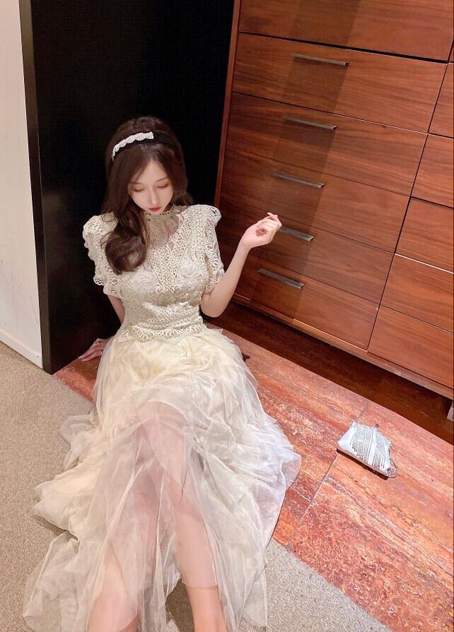 ふんだんに使われたレースにフェアリースカートの組み合わせがゴージャスなレースドレス
