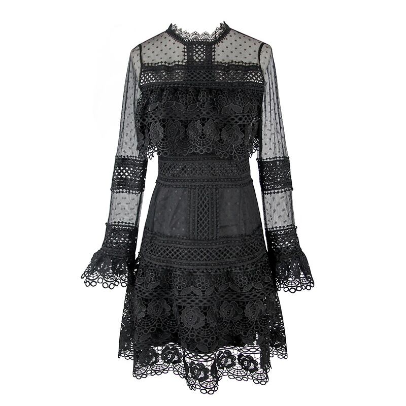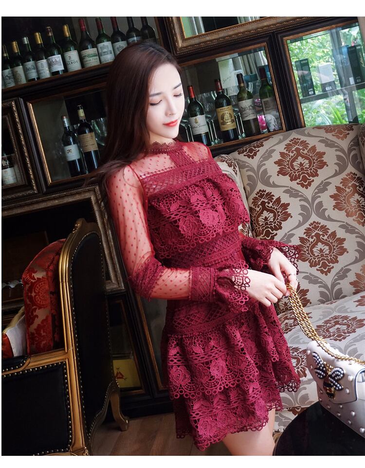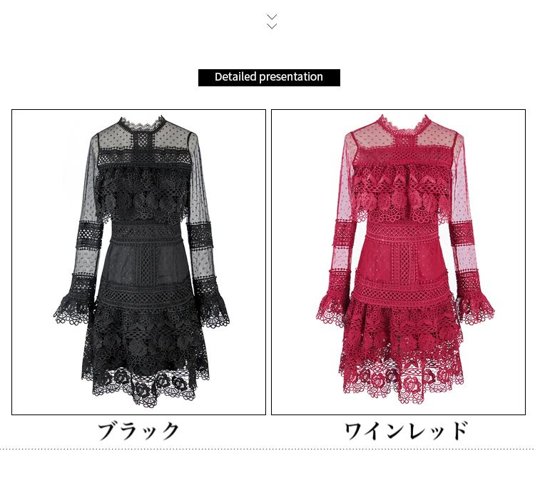 シースルーレースドレス シースルー ドット 水玉 レース ワンピース ドレス 長袖 膝上 ミニワンピ フェミニン パーティー お呼ばれ 二次会 デート かわいい 2カラー a4118
