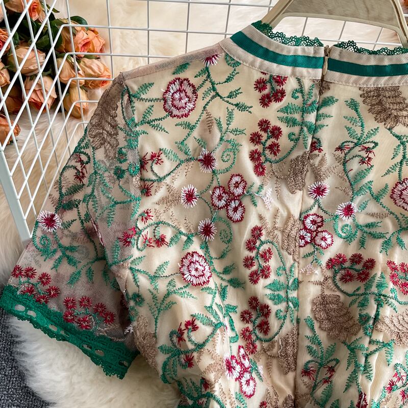 レースフラワー刺繍ワンピース 半袖 ワンピース ドレス 花柄 エレガント パーティー シースルー レース Aライン かわいい 大人可愛い 結婚式 二次会 お呼ばれ a4120
