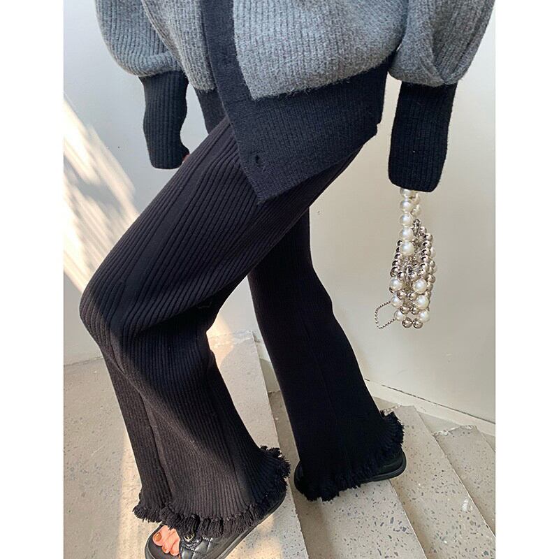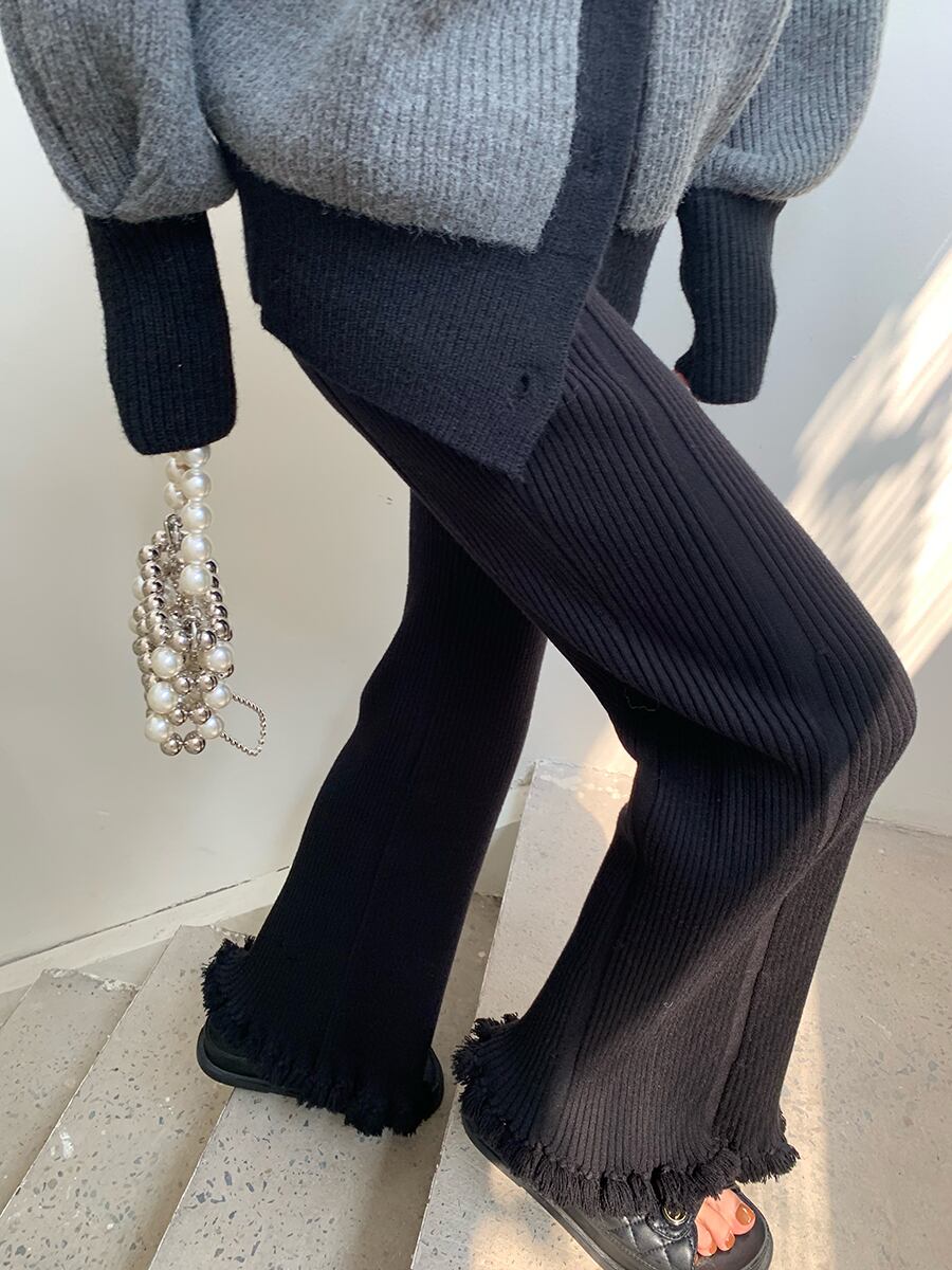 程よく存在感のあるセンターラインで脚長効果抜群のフリンジニットパンツ