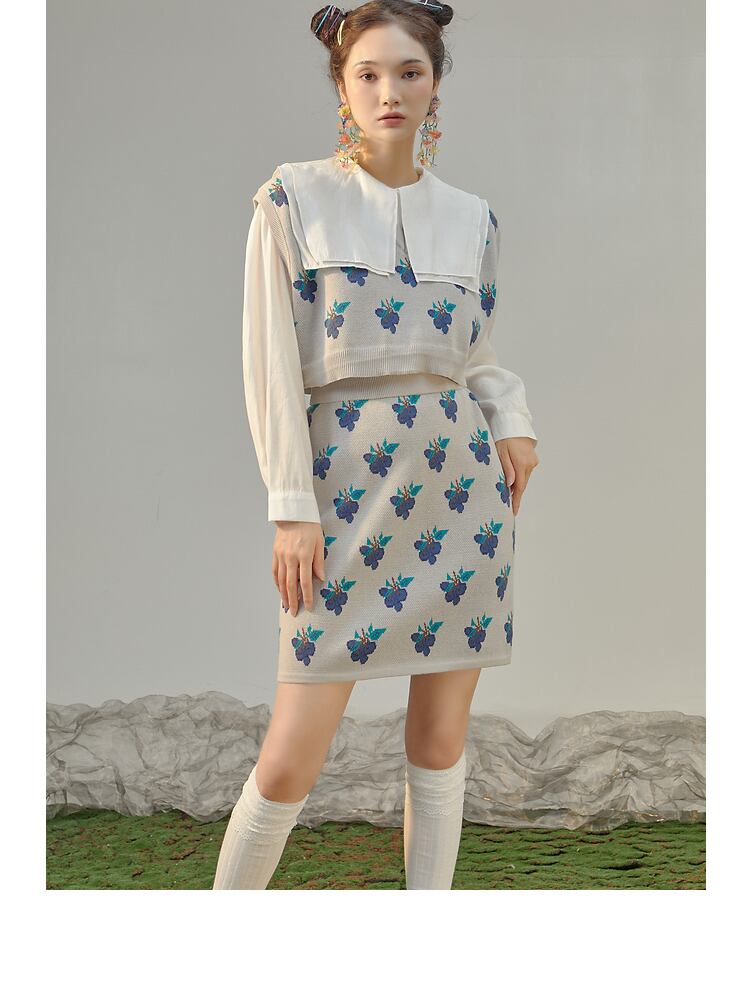 【セットアップ】ニットベスト+ニットスカート ツーピース. ニットアップ 上下セット. レディース ニット ベスト スカート かわいい フルーツ柄 a4136