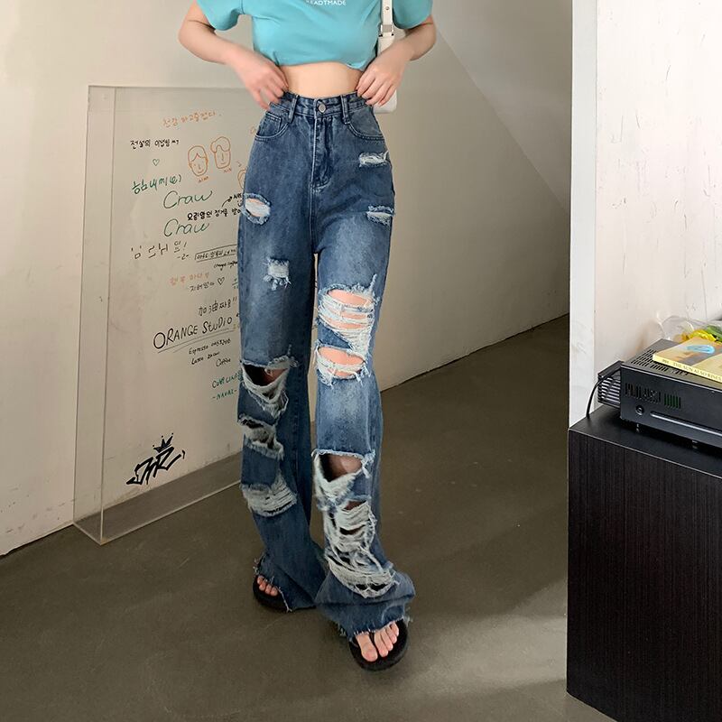ダメージデニム ダメージジーンズ デニム ジーンズ ボトムス ワイドレッグパンツ ストリート レディース アメカジ a3293