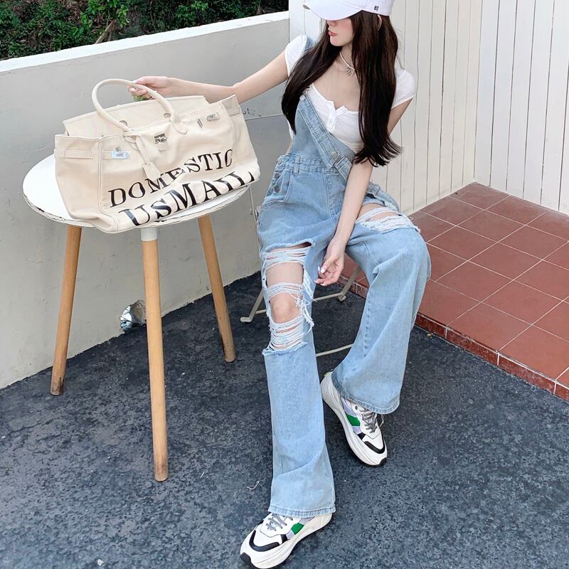 ダメージデニムオーバーオール オールインワン デニムオーバーオール レディース オーバーオール ルーズ ハイウエスト カジュアル ストリート アメカジ オシャレ a4146