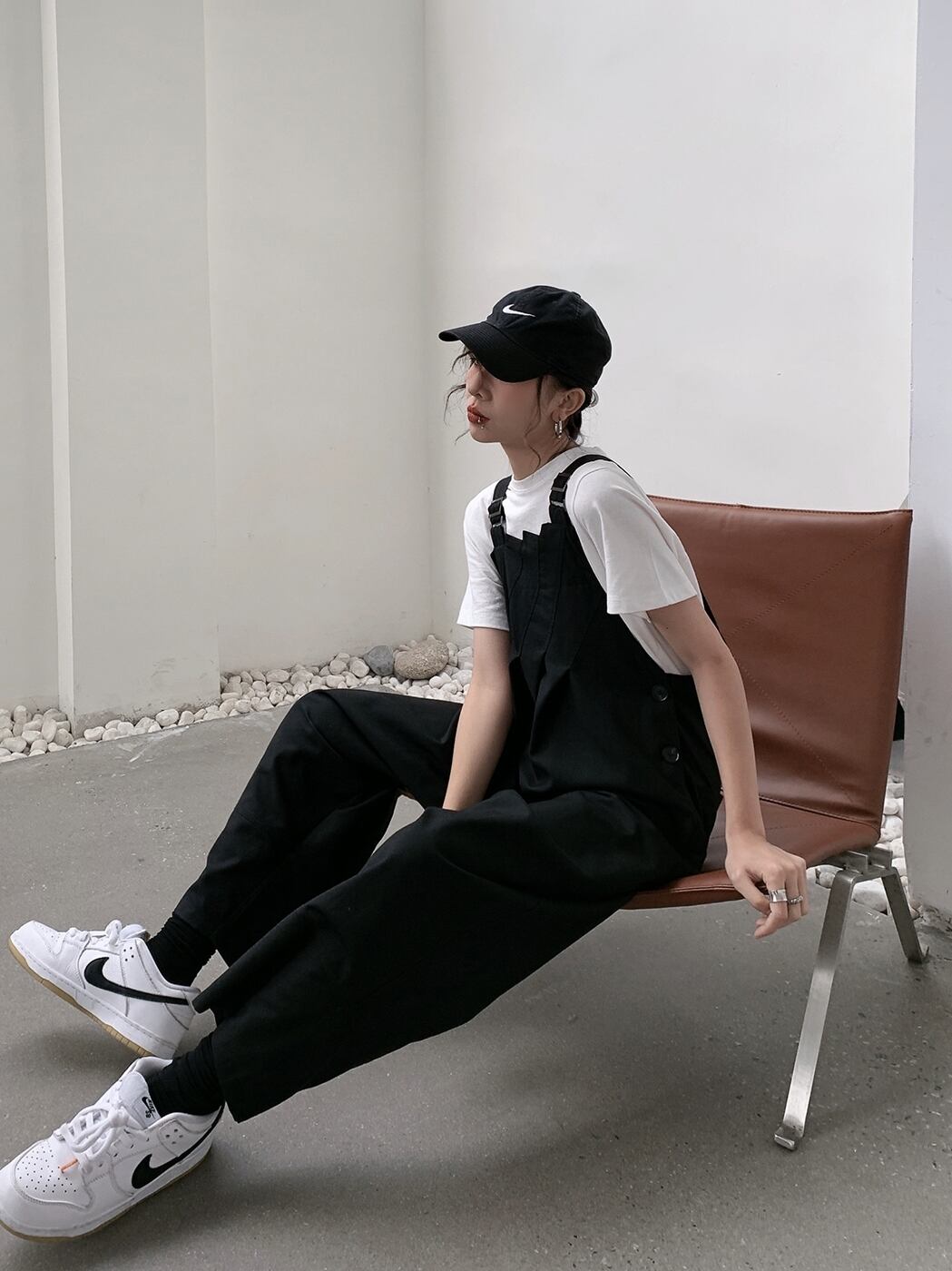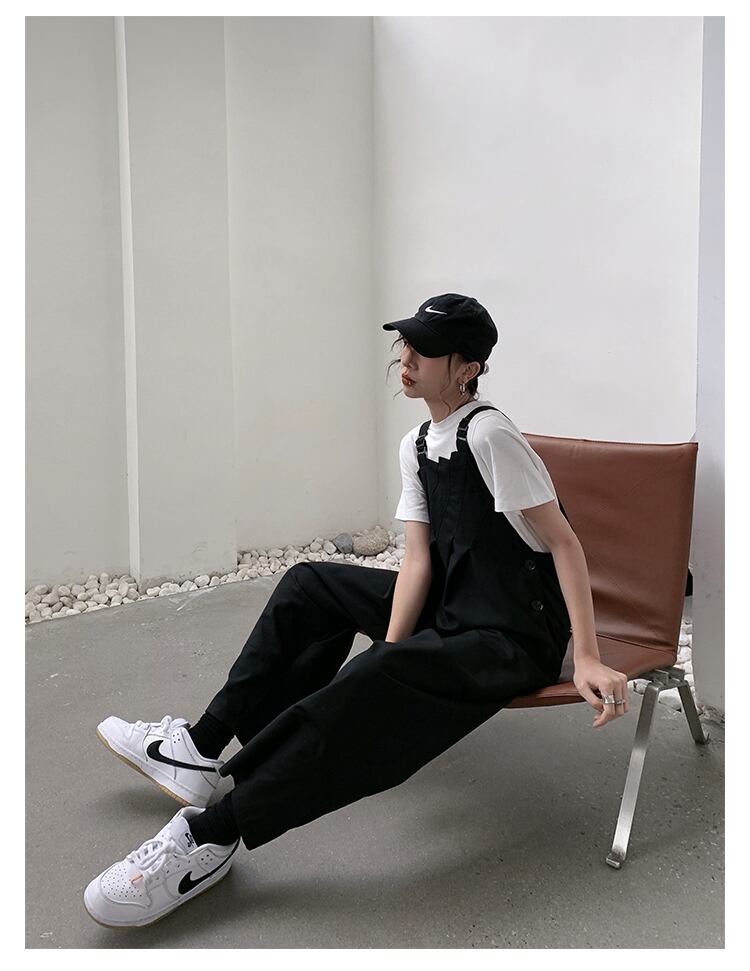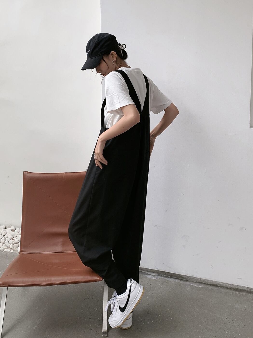 【日本未発売】プリーツオーバーオール. ブラック オーバーオール ハイウエスト ルーズ ジャンプスーツ レディース モード系 アメカジ カジュアル ストリート a4156