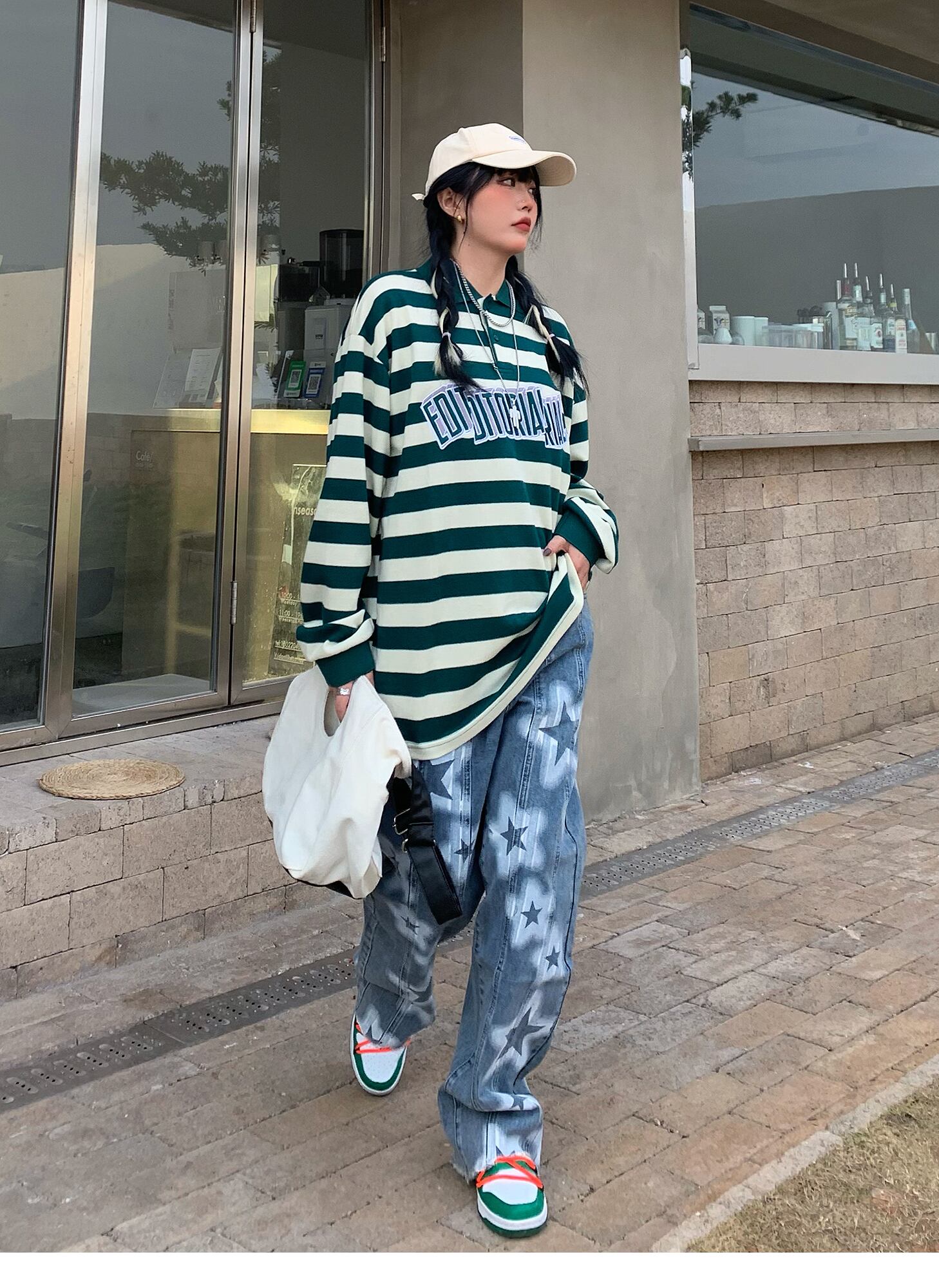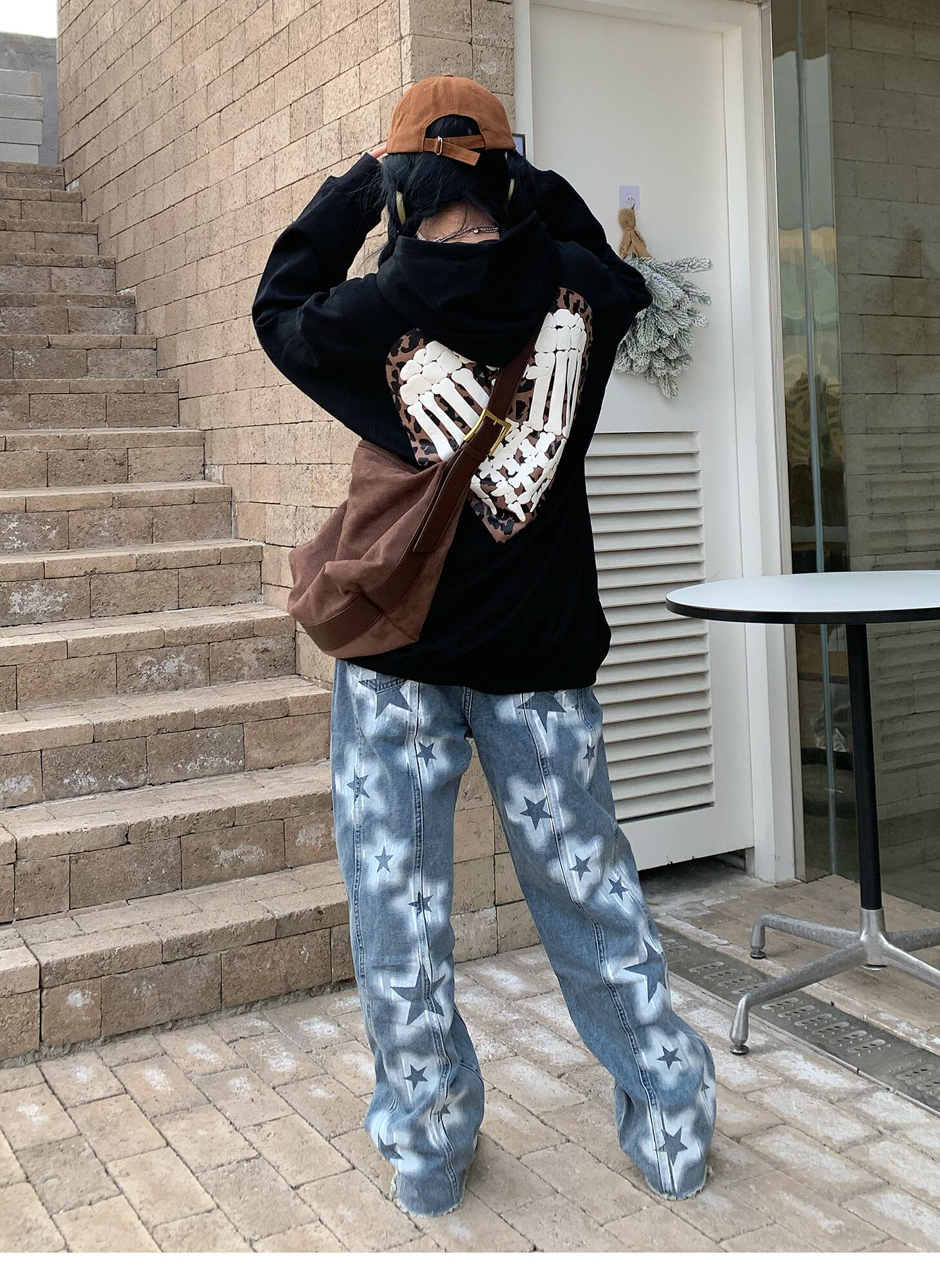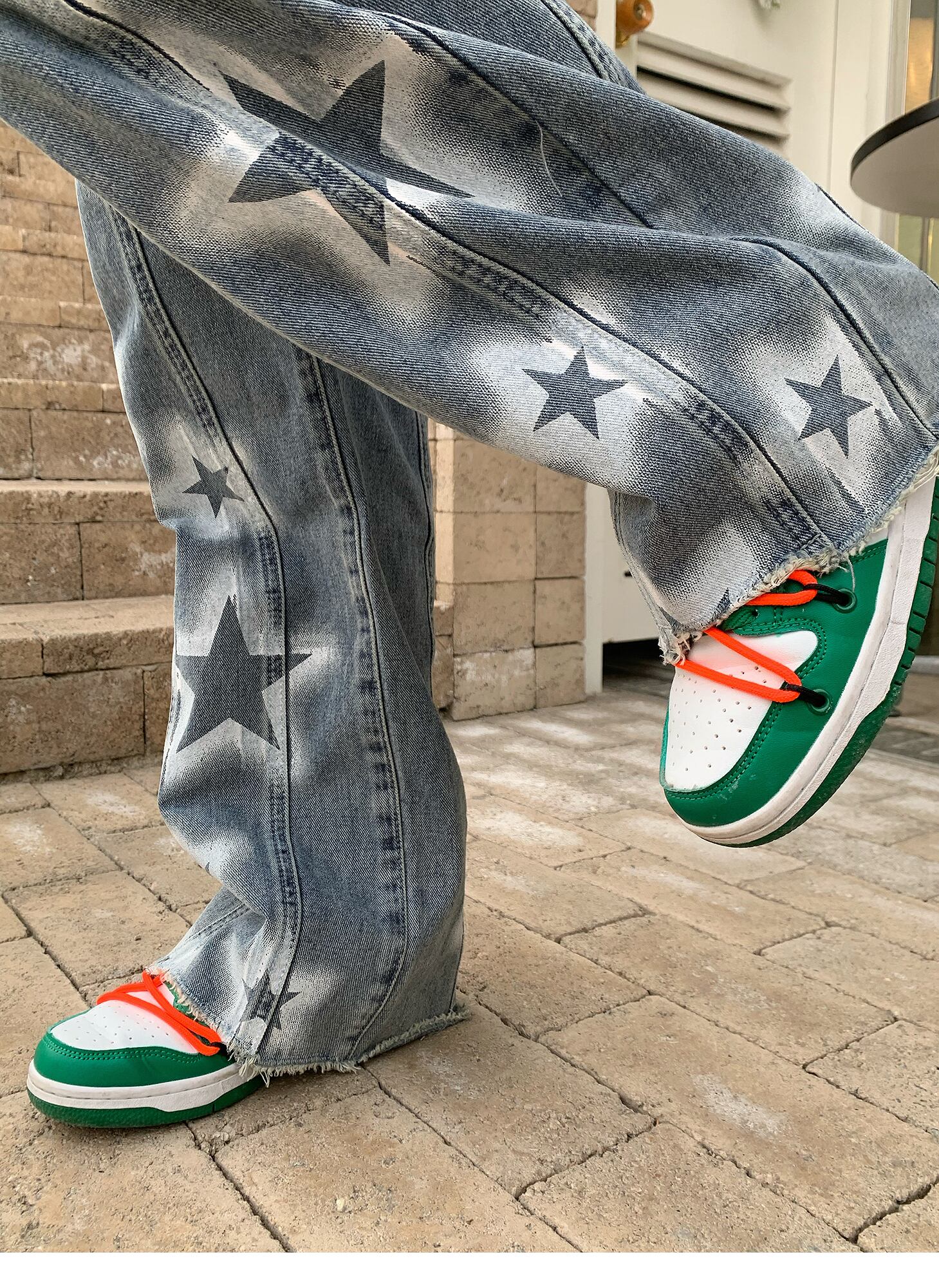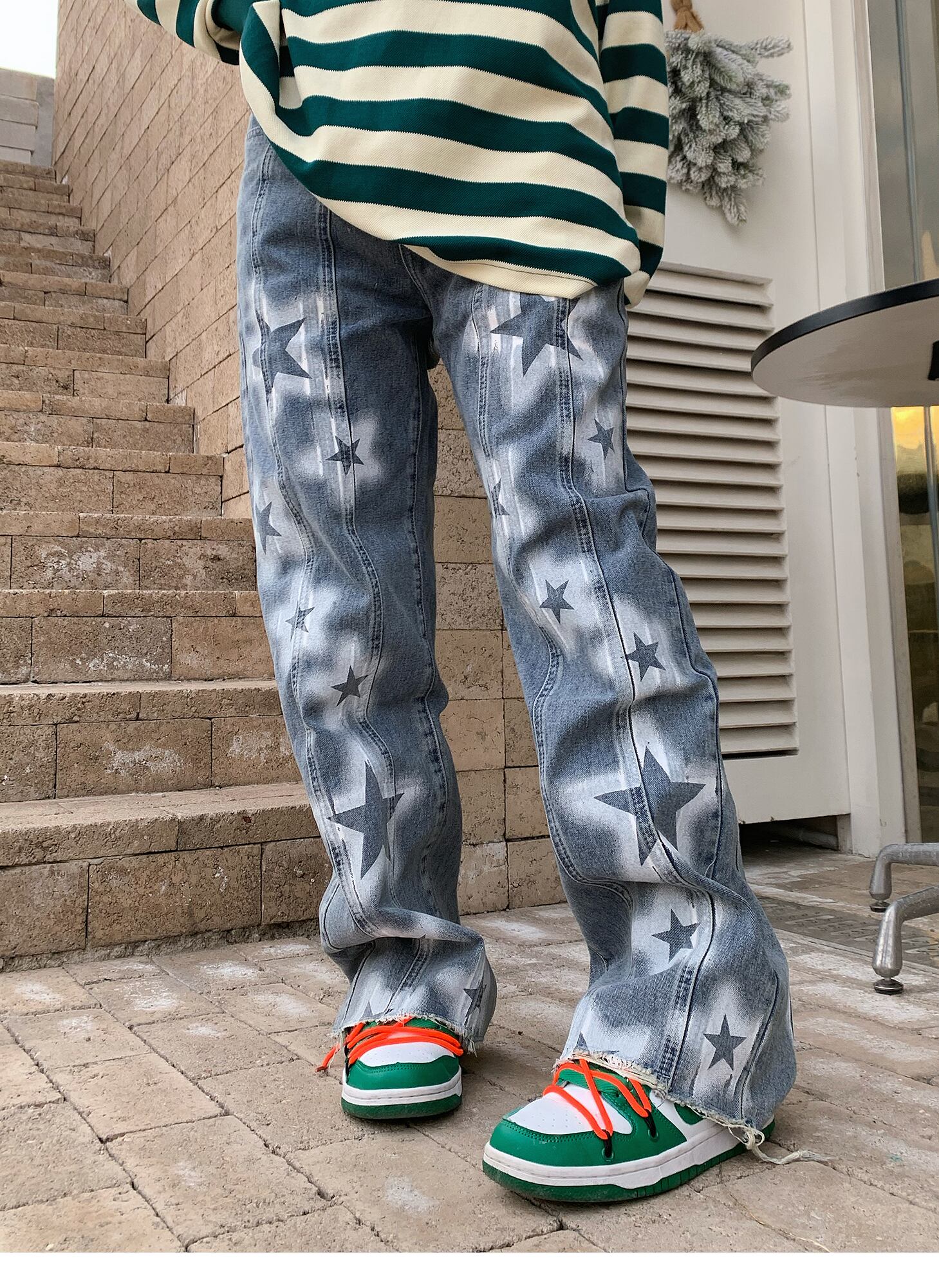 スタープリントストレートジーンズ ストレート デニム ジーンズ. ハイウエスト ボトムス 星柄 レディース ユニセックス アメカジ カジュアル ストリート a4169
