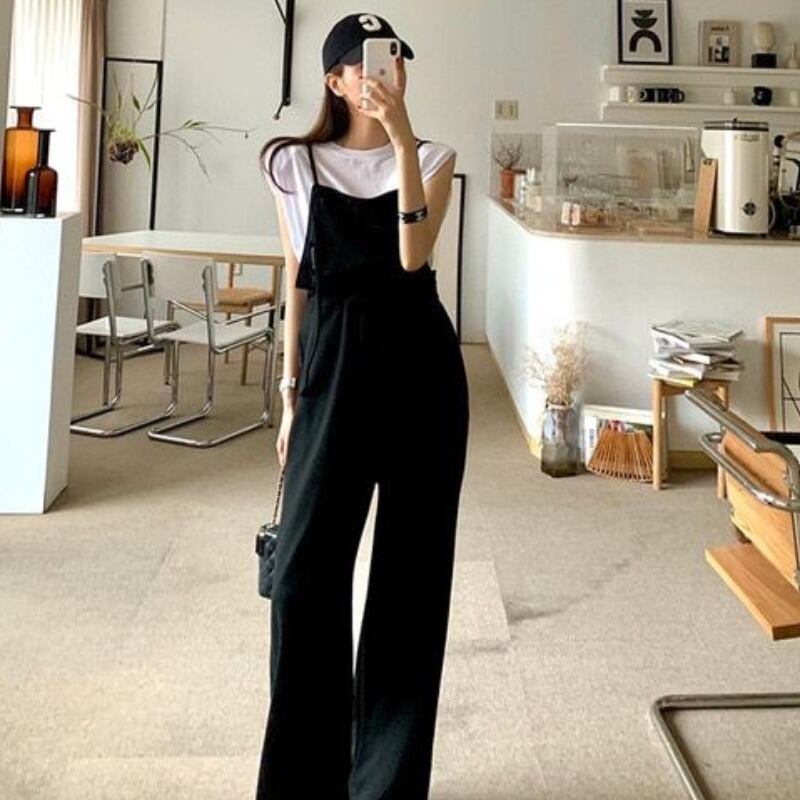 スウェット オールインワン サロペット ロンパース カジュアル レディース シンプル オーバーオール ワイドレッグパンツ a4186