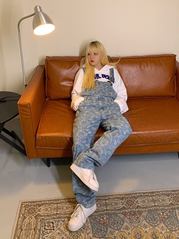 カシューフラワーデニムオーバーオール オールインワン デニムオーバーオール レディース オーバーオール ルーズ ハイウエスト カジュアル ストリート アメカジ オシャレ a4187