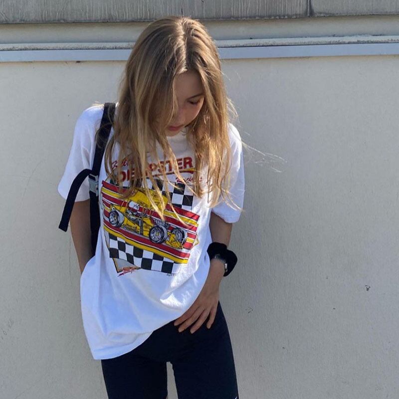 プリント半袖Tシャツ 半袖 Tシャツ トップス フロントプリント クルーネック オーバーサイズ アメカジ カジュアル ストリート a4199