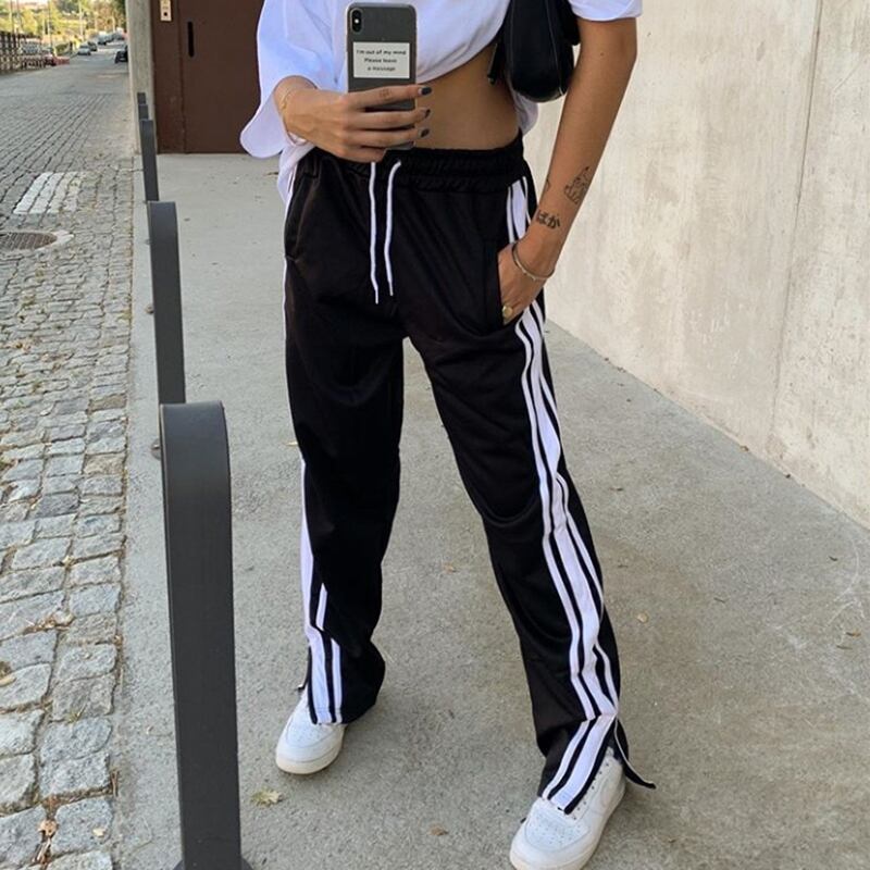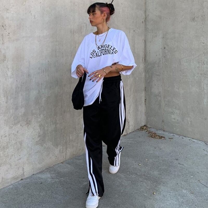 サイドスリットカジュアルパンツ 半袖Tシャツ スウェット パンツ 半袖 Tシャツ カットソー レディース クルーネック オーバーサイズ アメカジ カジュアル ストリート a4202