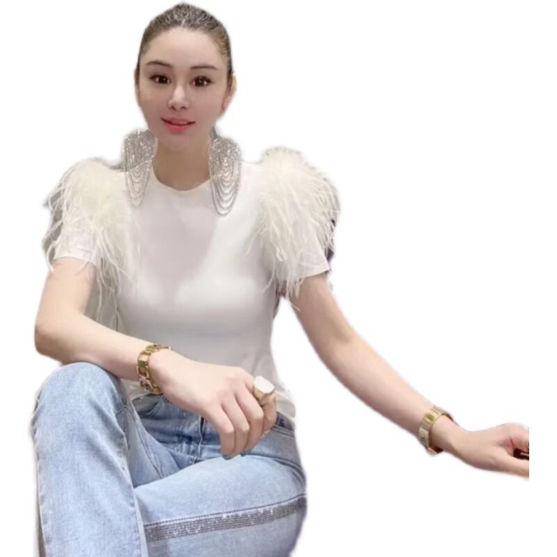 フェアリースリーブ 半袖Tシャツ トップ 半袖 Tシャツ かわいい ゴージャス プルオーバー レディース オフィスコーデ 2カラー a4209