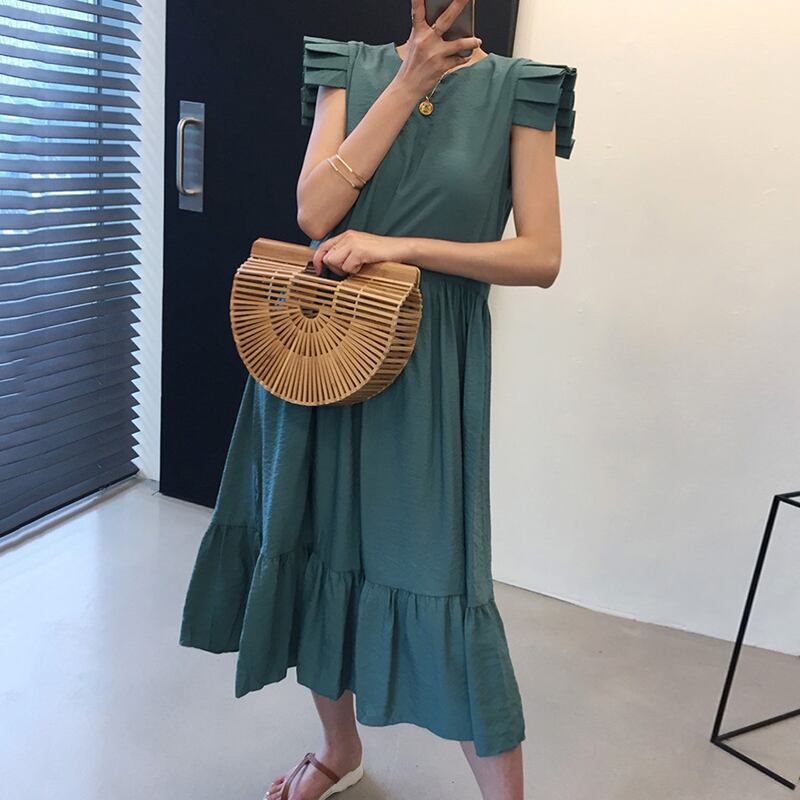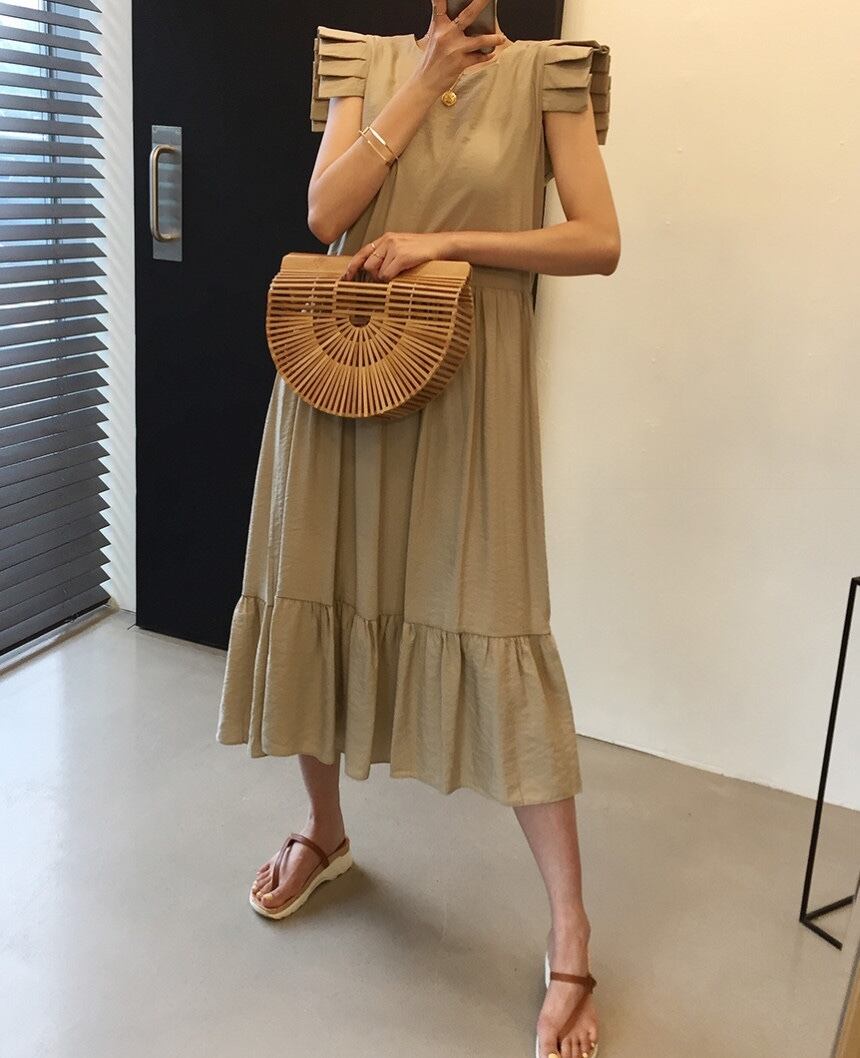 プリーツワンピース プリーツスリーブ ワンピース ドレス サマーワンピ フリルドレス レディース オフィスコーデ デート オルチャン 2カラー a4229