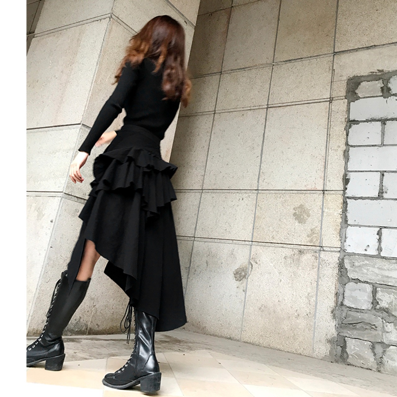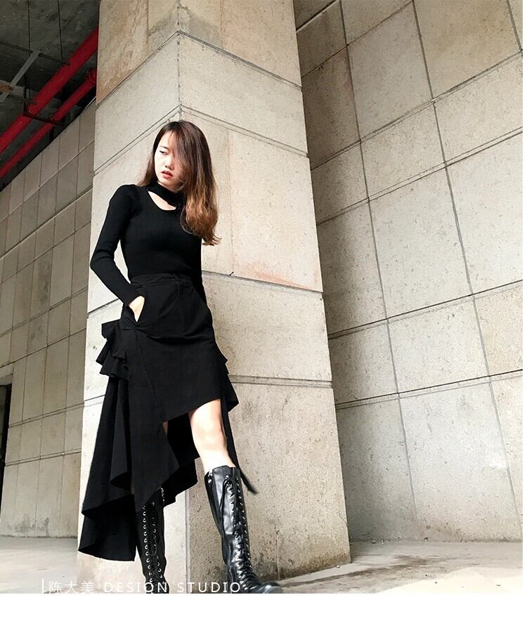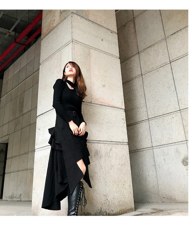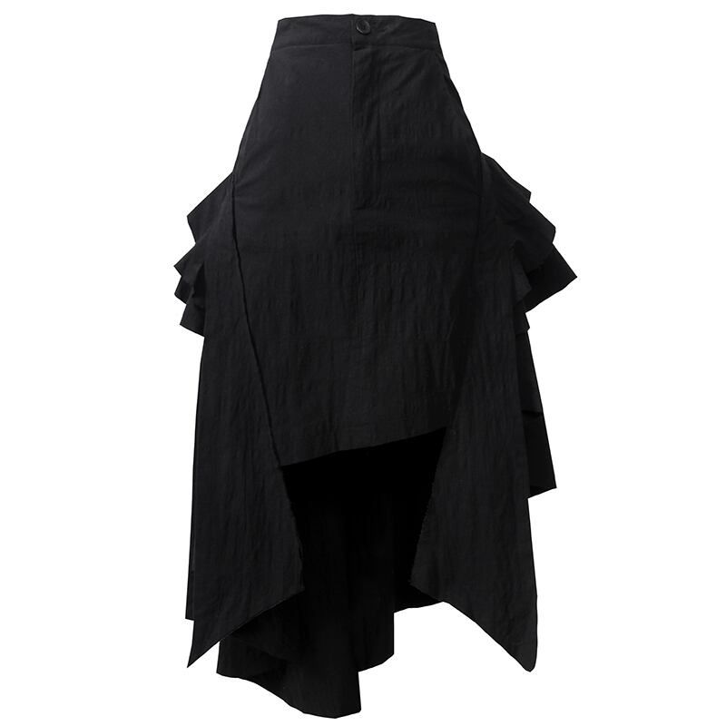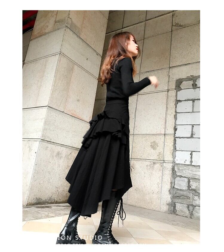 アシメントリースカート ブラックスカート スカート アシンメトリー 無地 Aラインフレア カジュアル系 フリル こなれ感 ブラックコーデ モード系 a4247