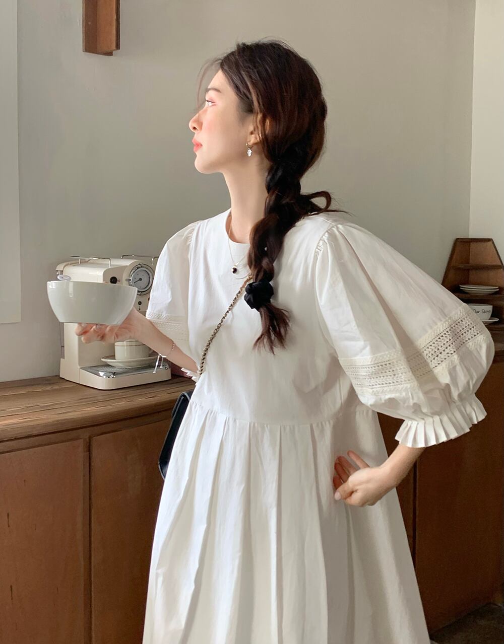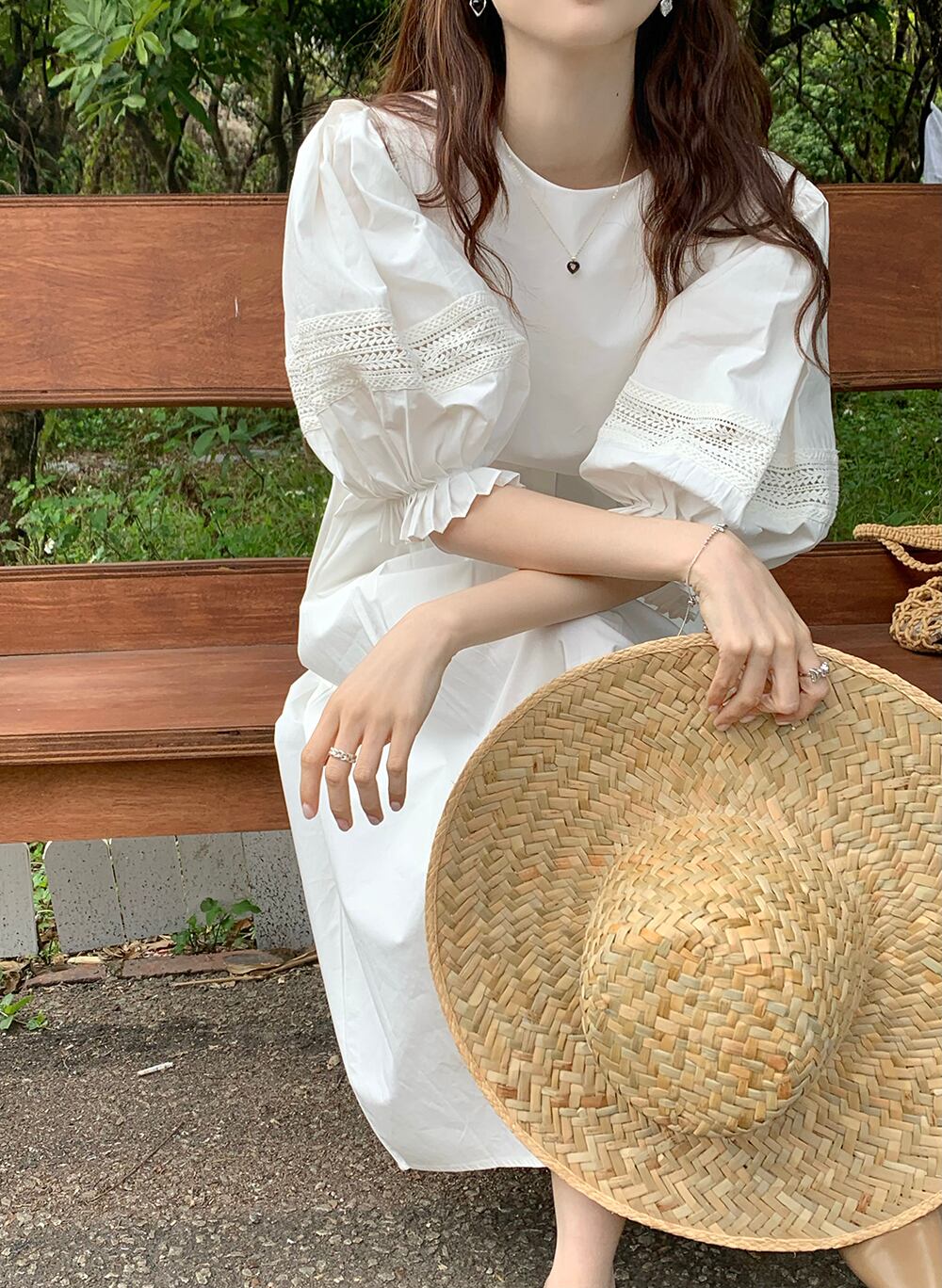 ランタンスリーブ ワンピース 半袖ワンピース マキシワンピース 半袖 ワンピース ドレス ルーズ ゆったり 薄手 シンプル ラウンドネック a4267