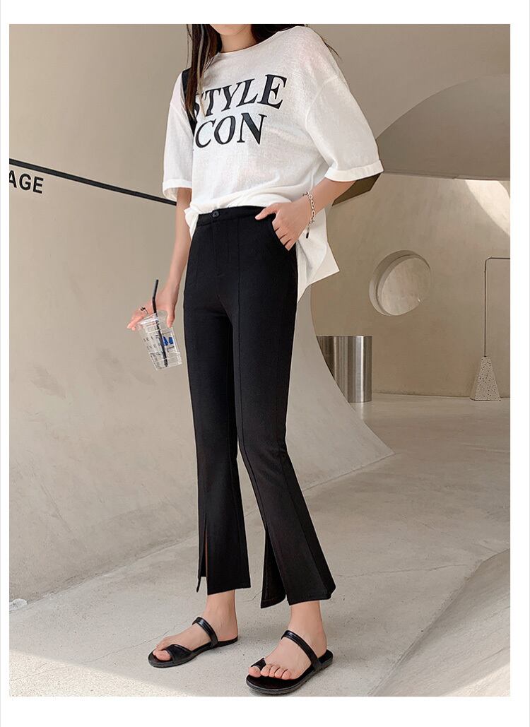 フロントスリット フレアパンツ 9分丈 カジュアルパンツ スーツパンツ ハイウエスト レディース 春秋 ブラック パンツ お仕事コーデ オフィスコーデ a4275