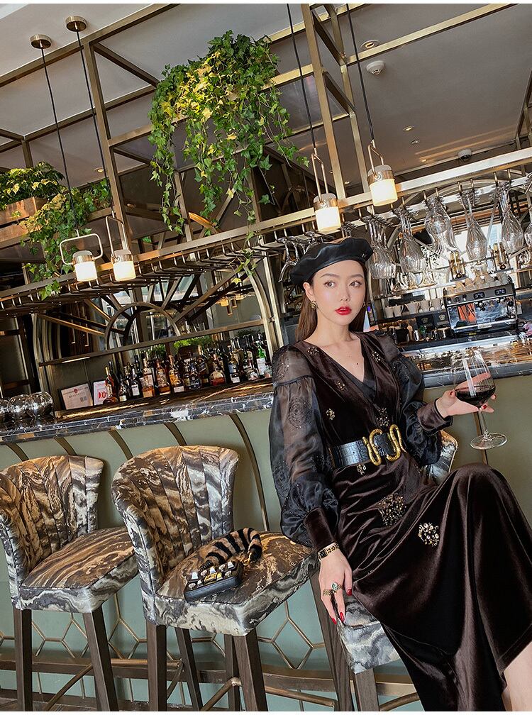 ゴージャス・エレガントデザインのVネックベルベットドレス