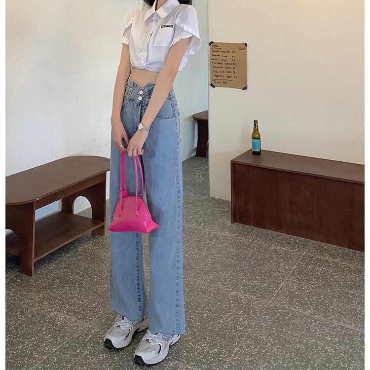 ハイウエスト ストレートジーンズ ジーンズ デニム レディース フレアジーンズ ボトムス ストレートパンツ a4285